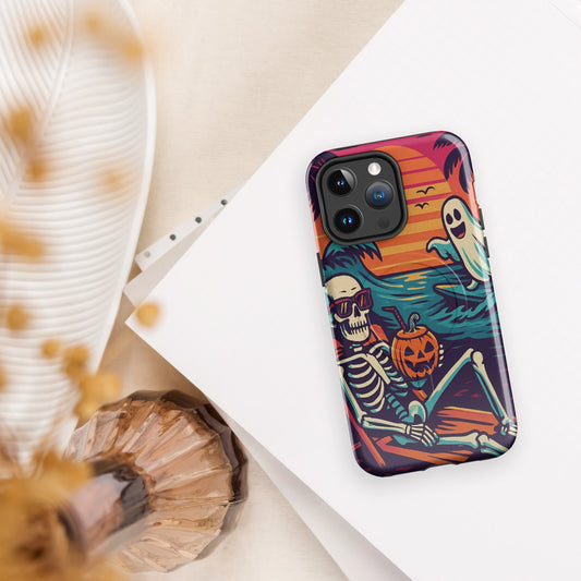 Summerween "Sun’s Out, Ghouls Out" Tough iPhone Case – Skeleton & Ghost Beach Design (iPhone 11–16, Mini, Pro, Pro Max)