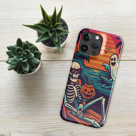 Summerween "Sun’s Out, Ghouls Out" iPhone Snap Case – Spooky Skeleton & Ghost Beach Design (iPhone 11–16, Mini, Pro, Pro Max)