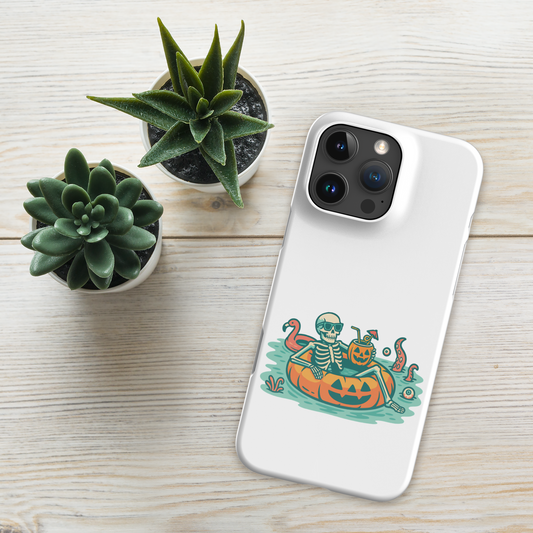 Summerween Skeleton Snap iPhone Case – Poolside Pumpkin Design (11–16, Mini, Pro, Pro Max)