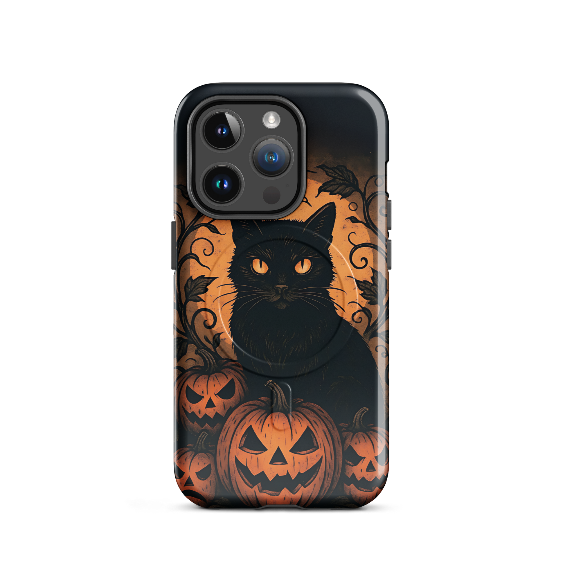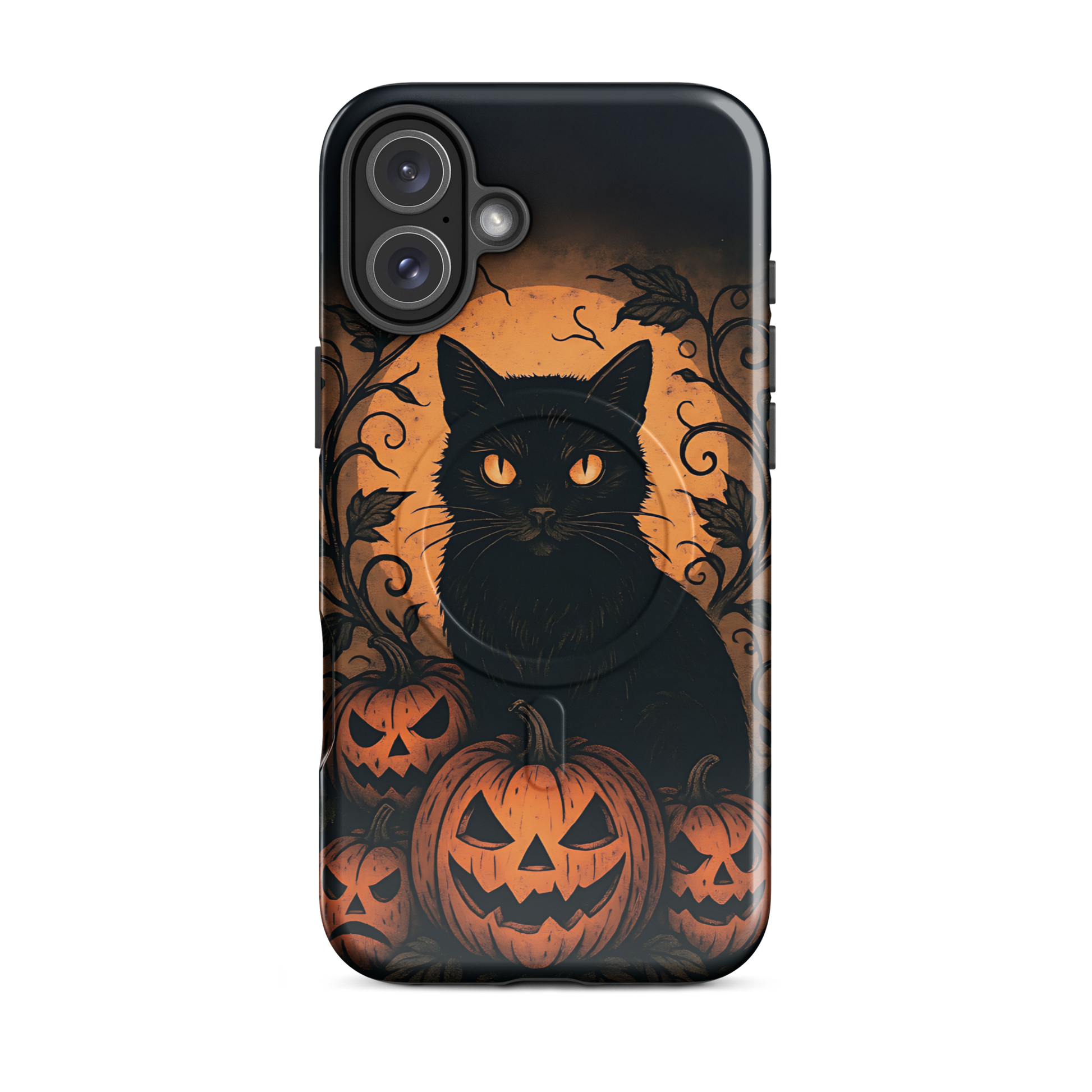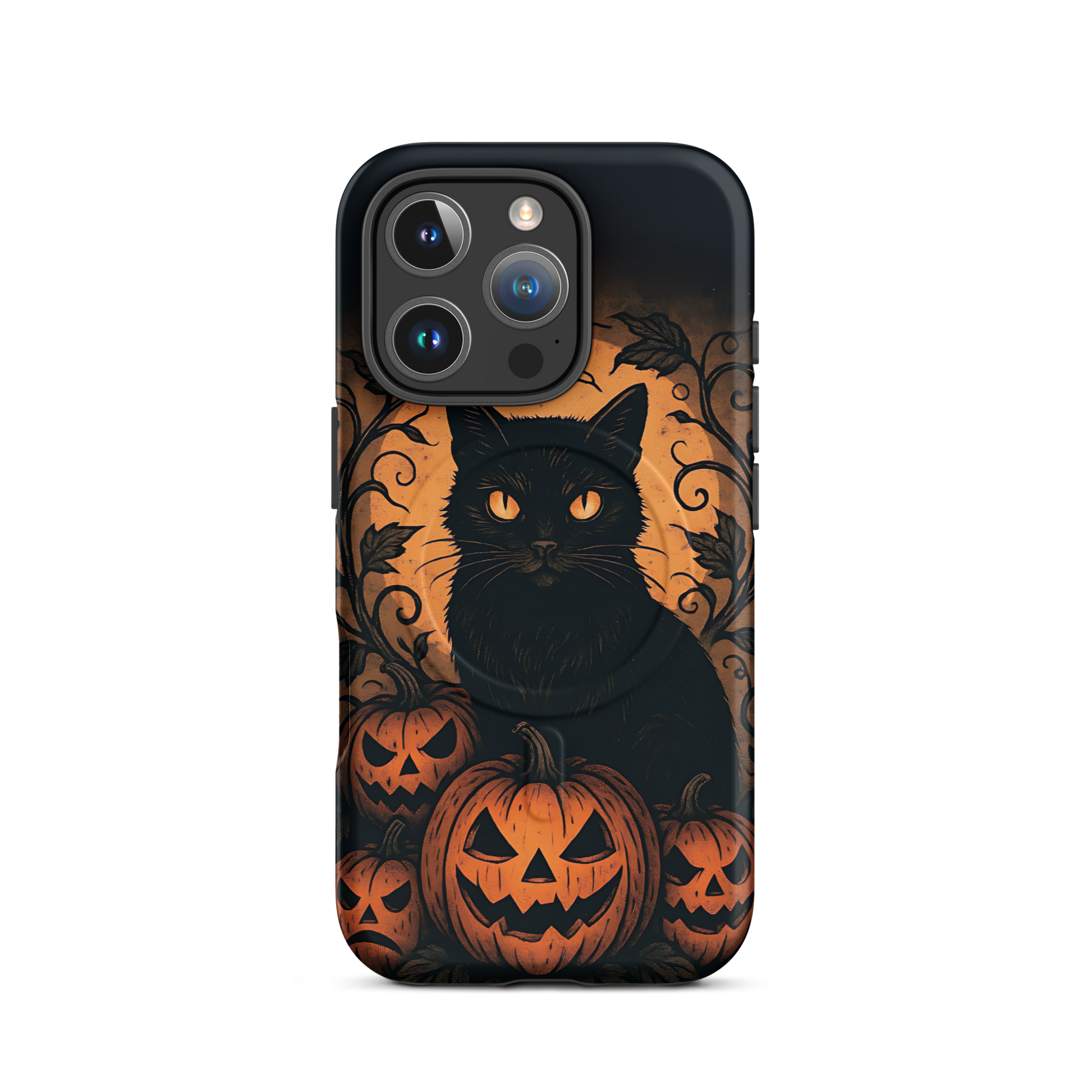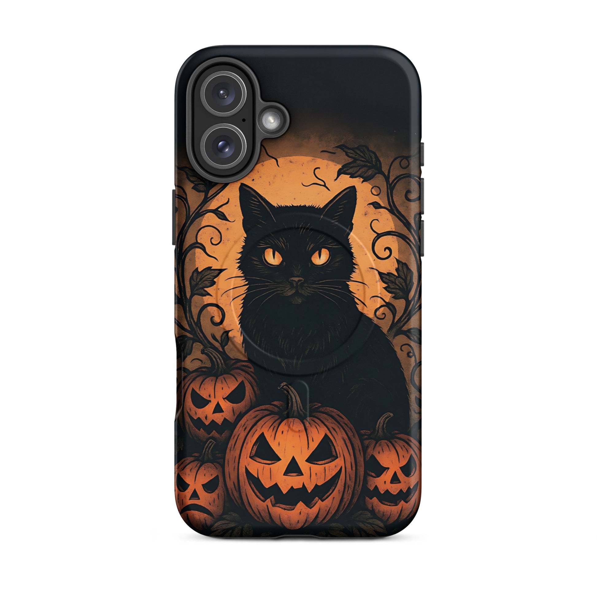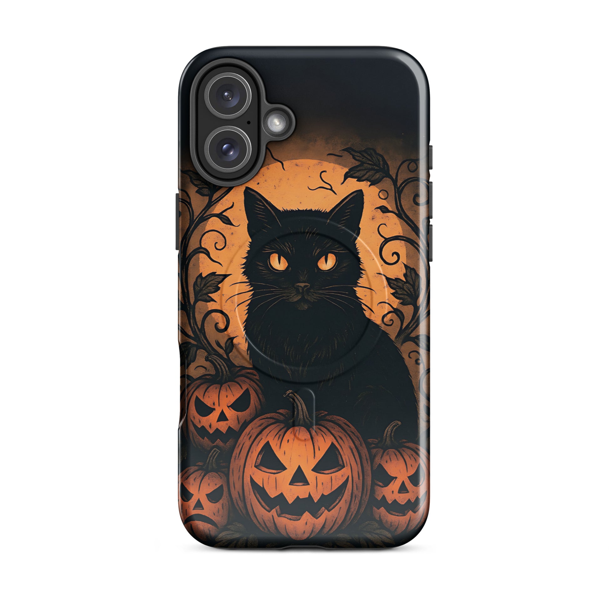 Halloween Harvest Cat iPhone MagSafe Case – Spooky Pumpkin Jack-o’-Lantern Black Cat Cover (14/15/16, Pro & Pro Max)