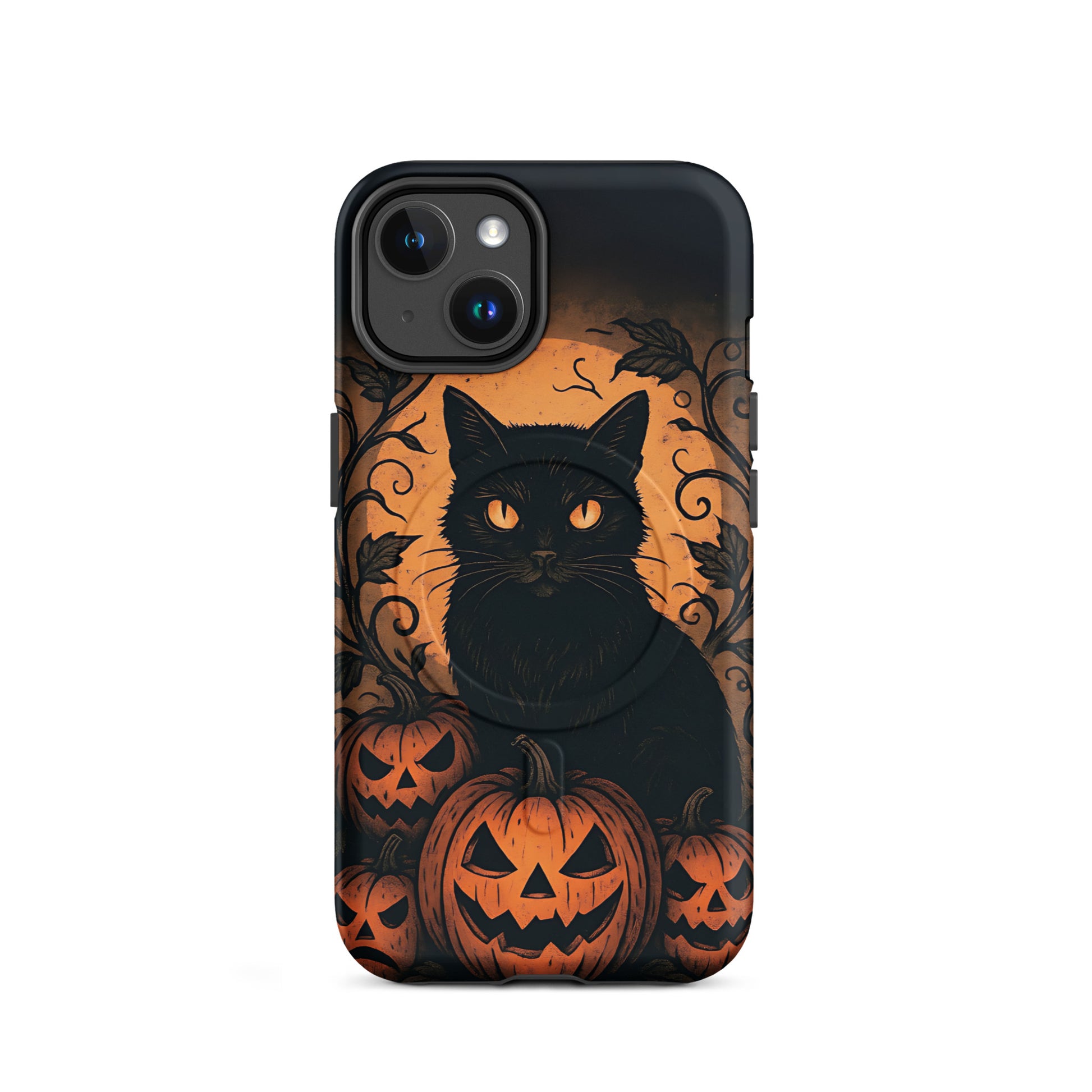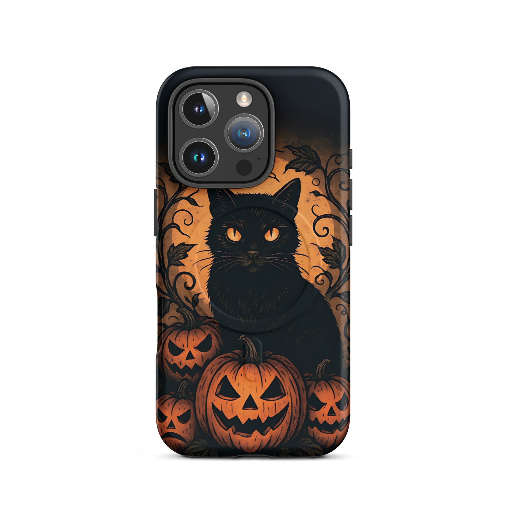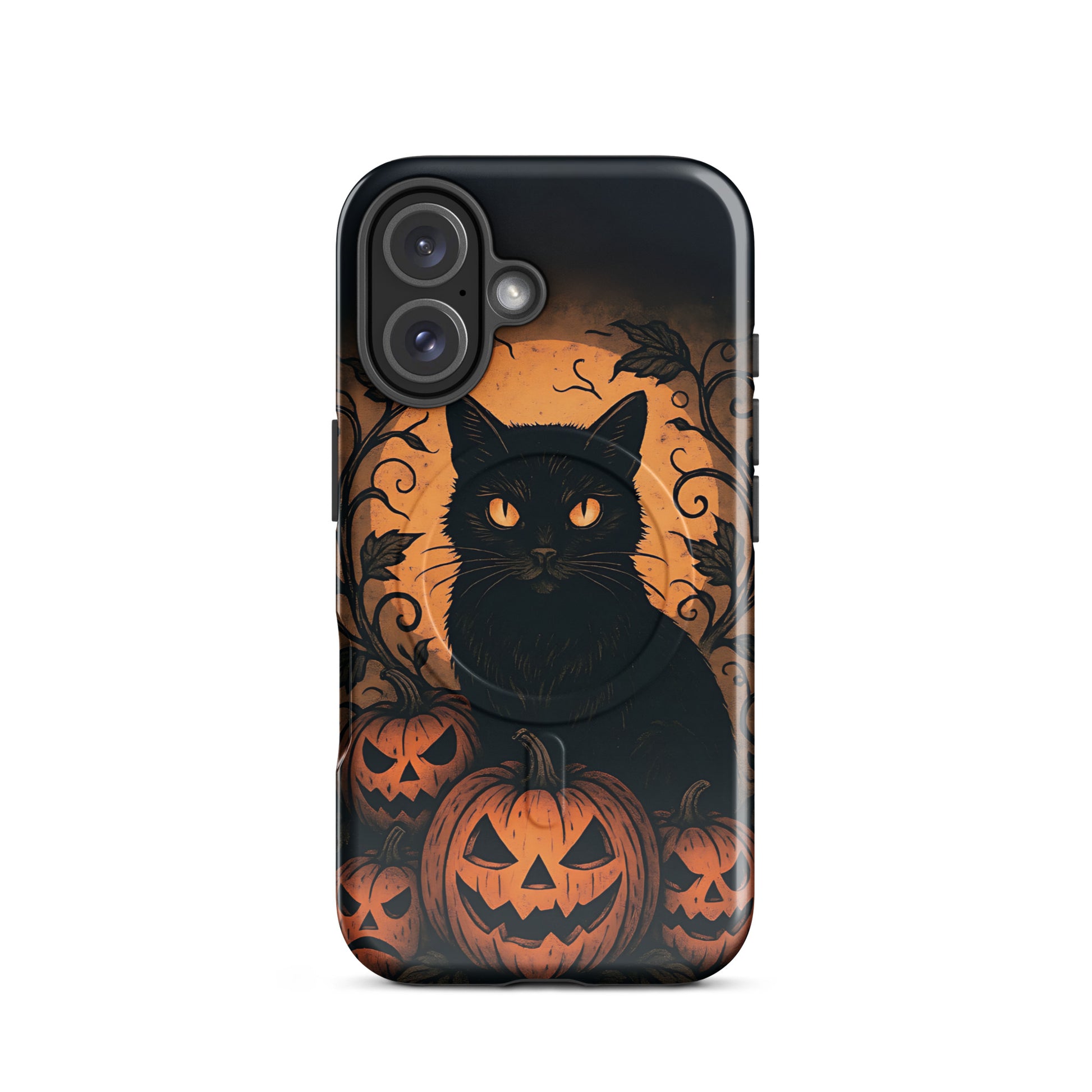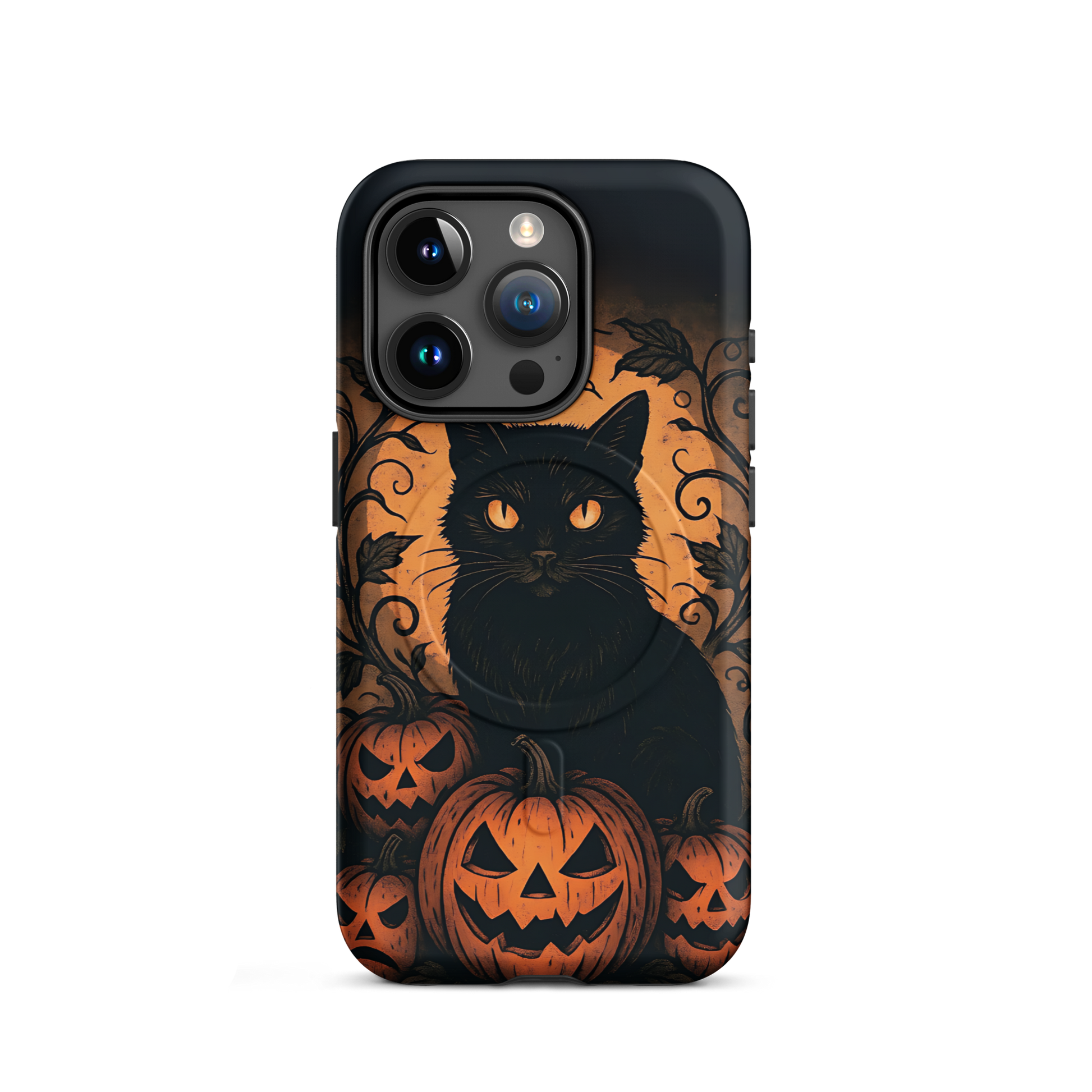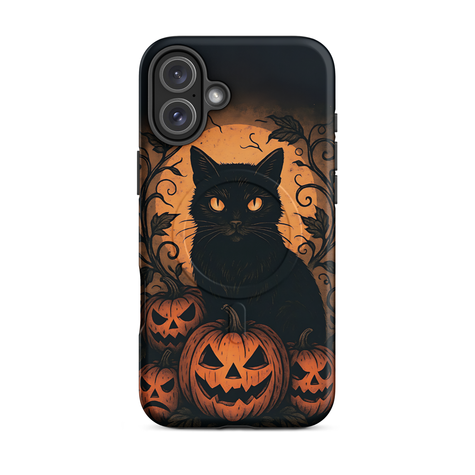 Halloween Harvest Cat iPhone MagSafe Case – Spooky Pumpkin Jack-o’-Lantern Black Cat Cover (14/15/16, Pro & Pro Max)