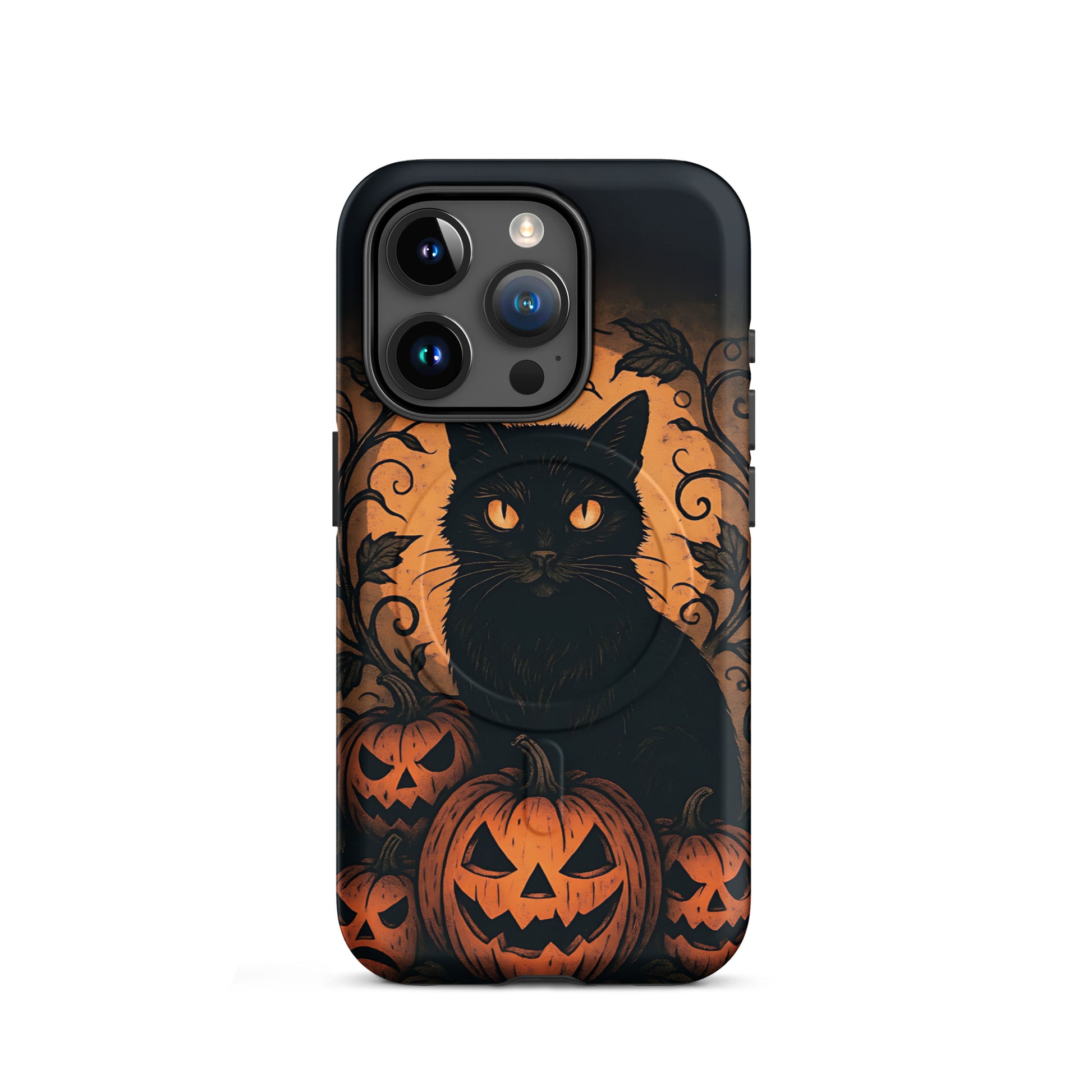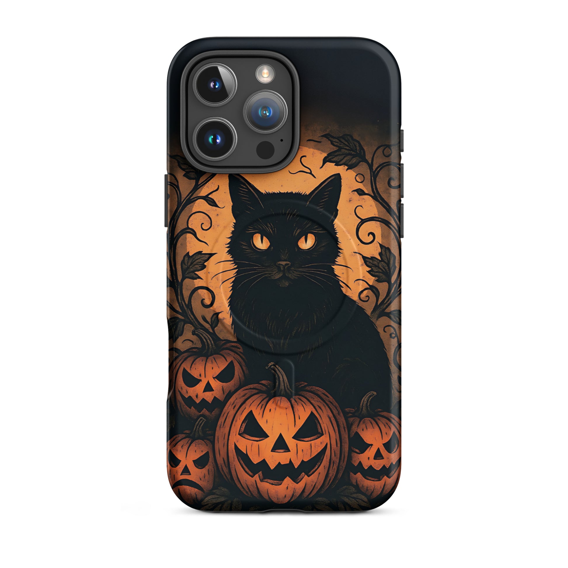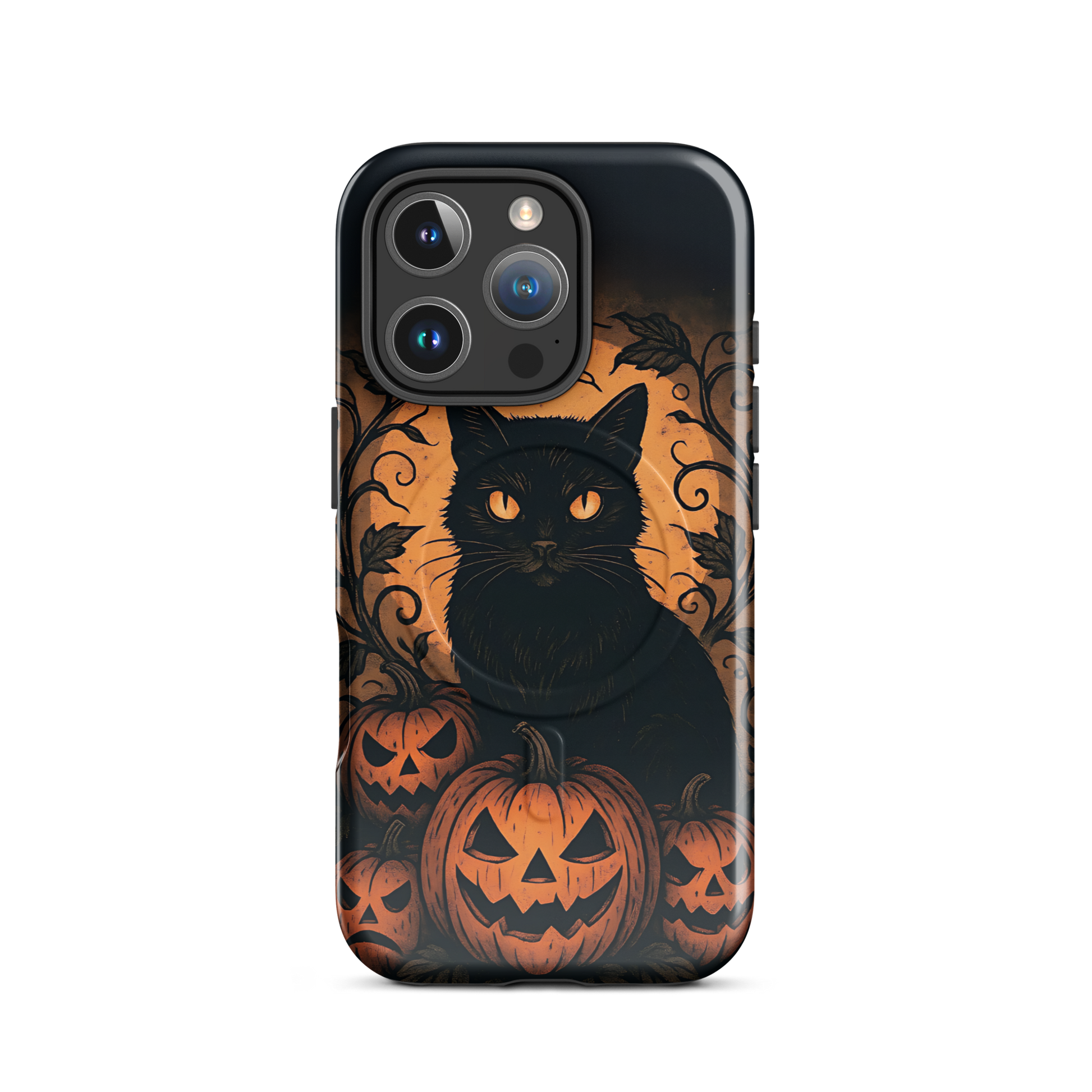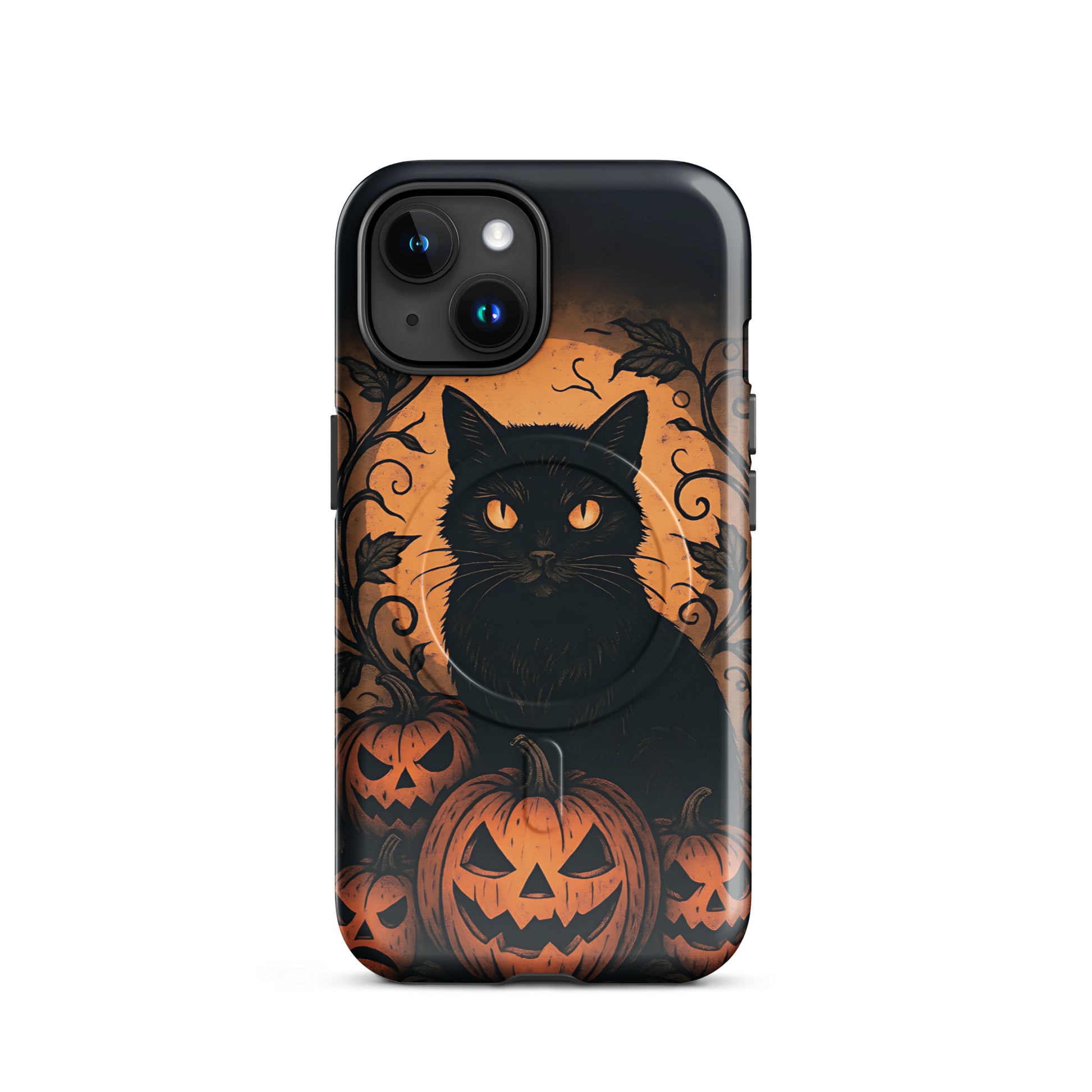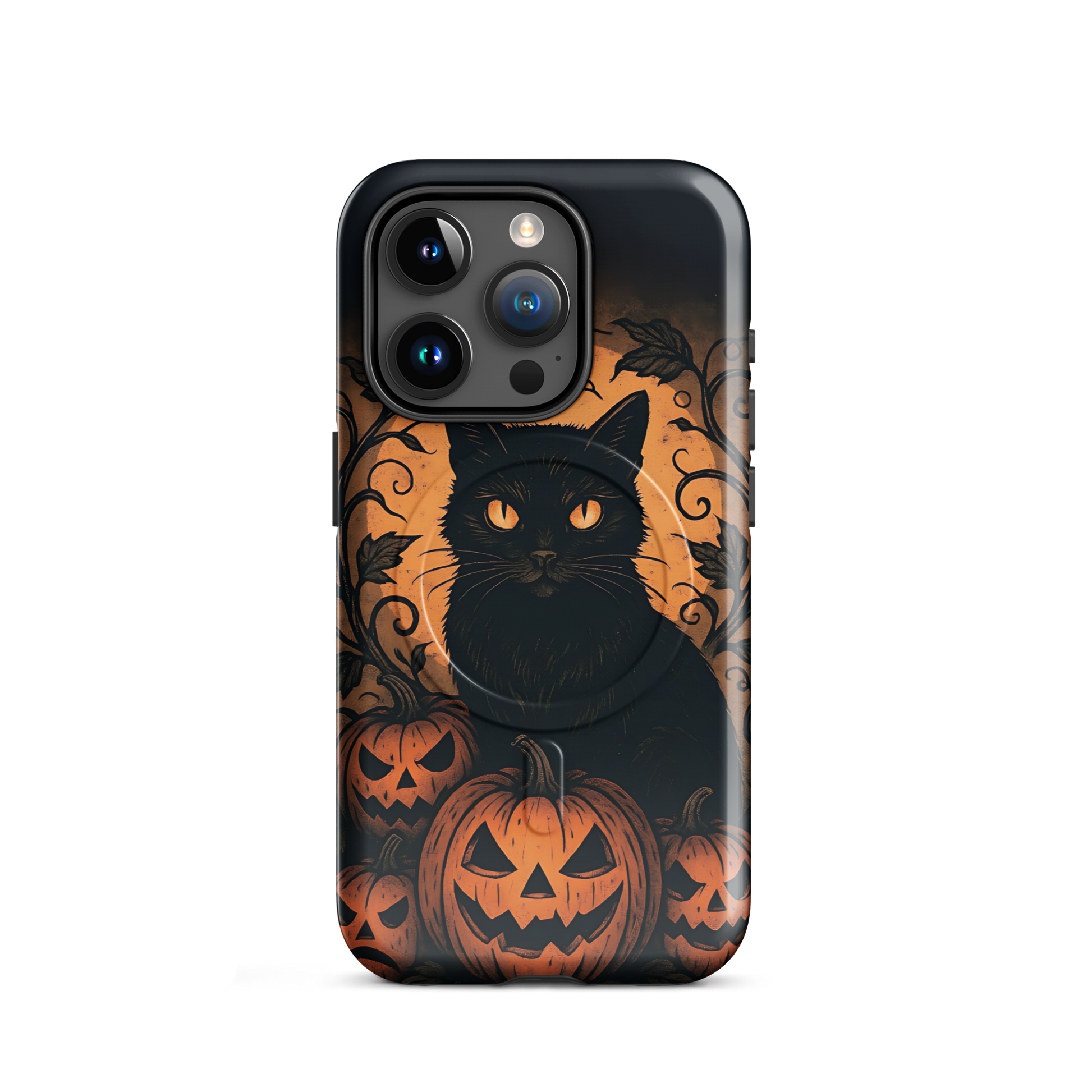 Halloween Harvest Cat iPhone MagSafe Case – Spooky Pumpkin Jack-o’-Lantern Black Cat Cover (14/15/16, Pro & Pro Max)