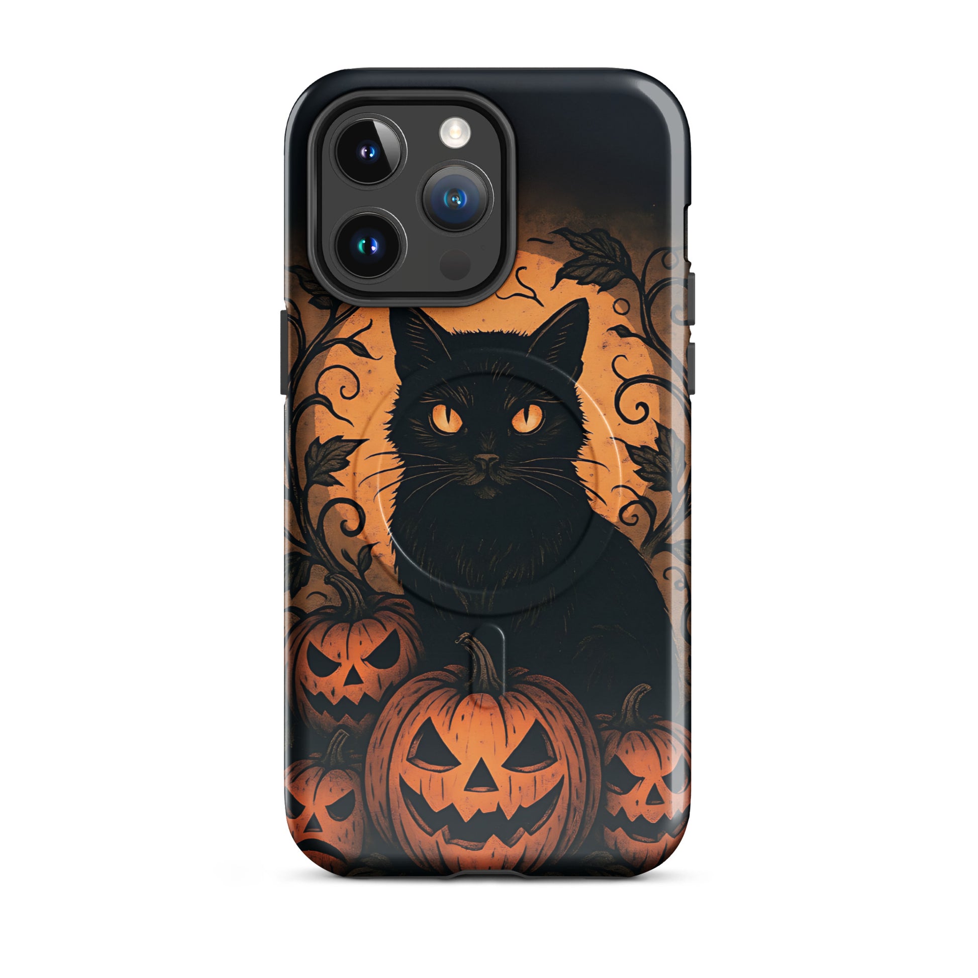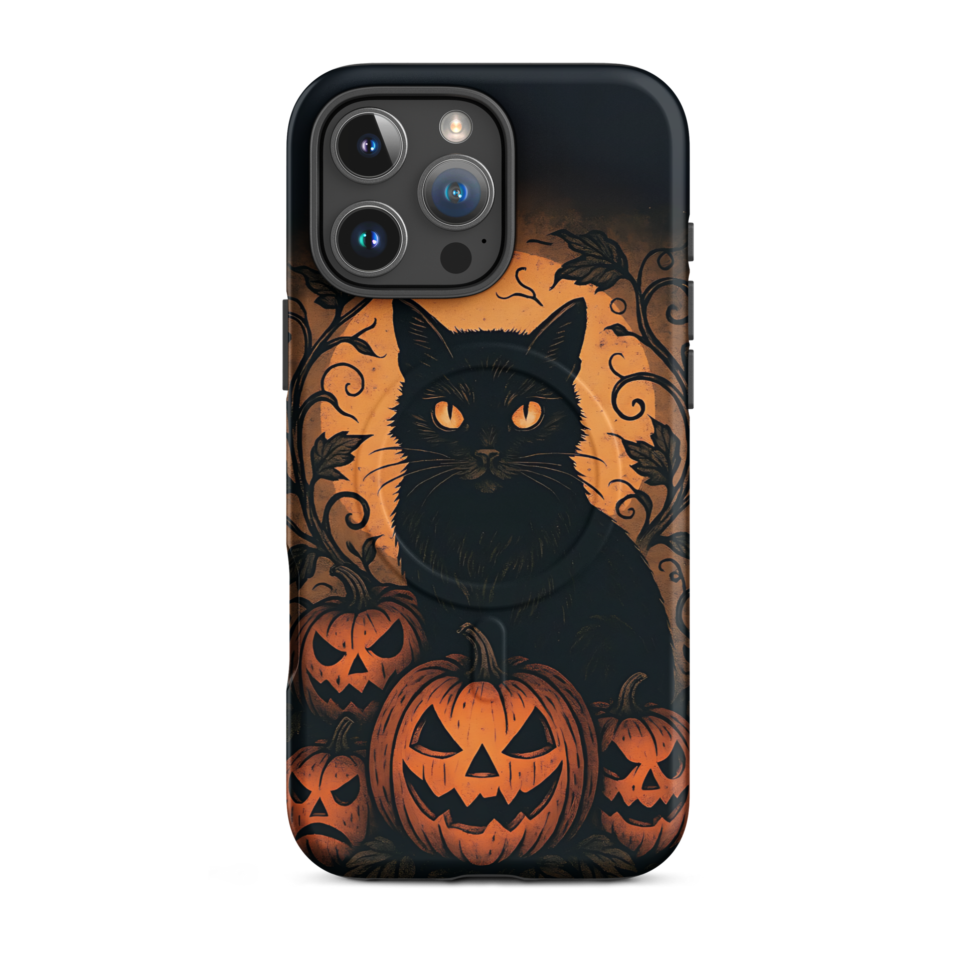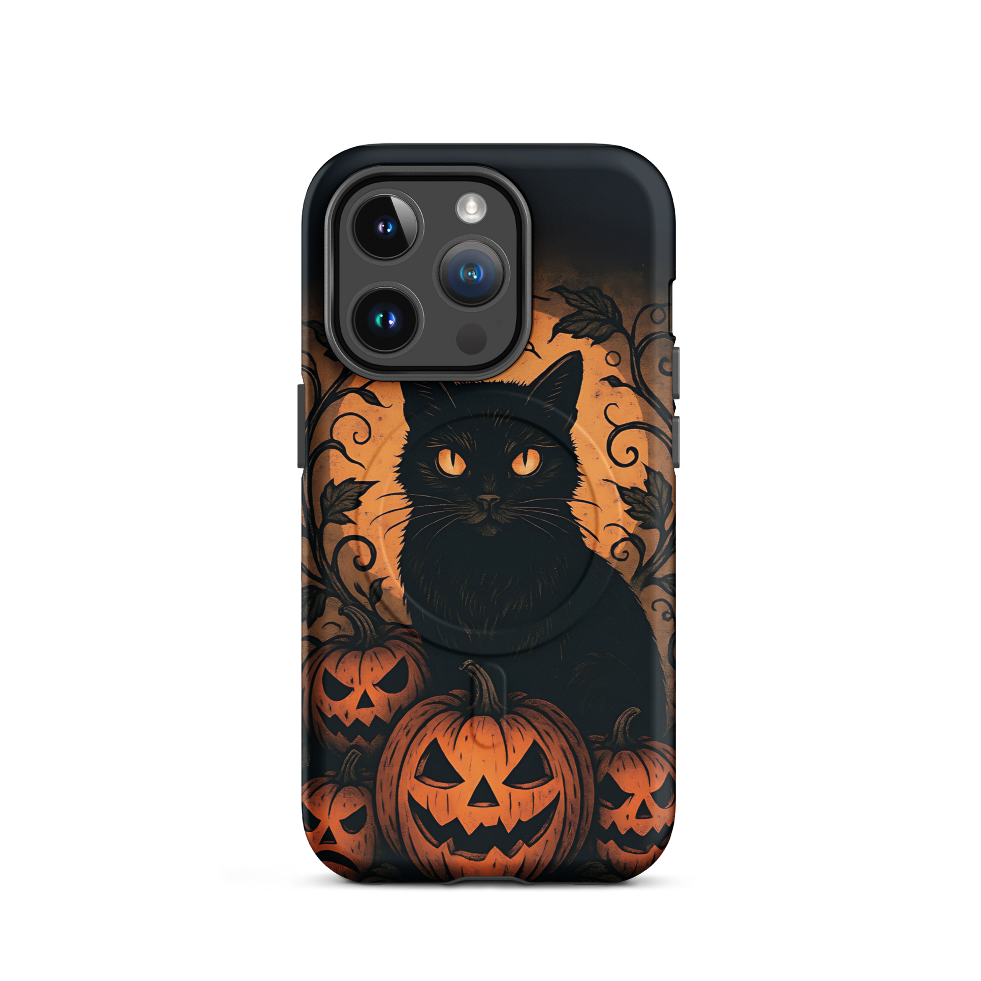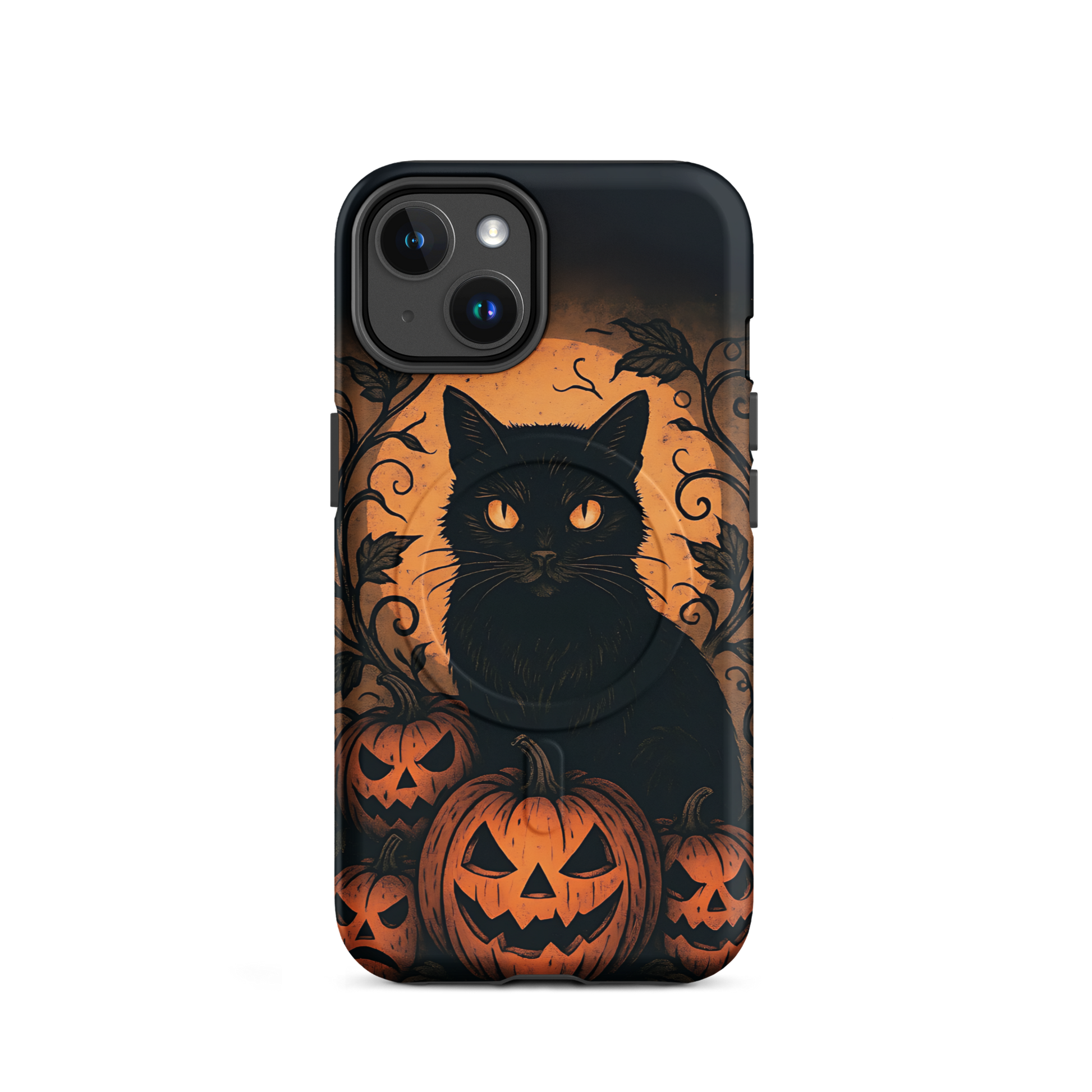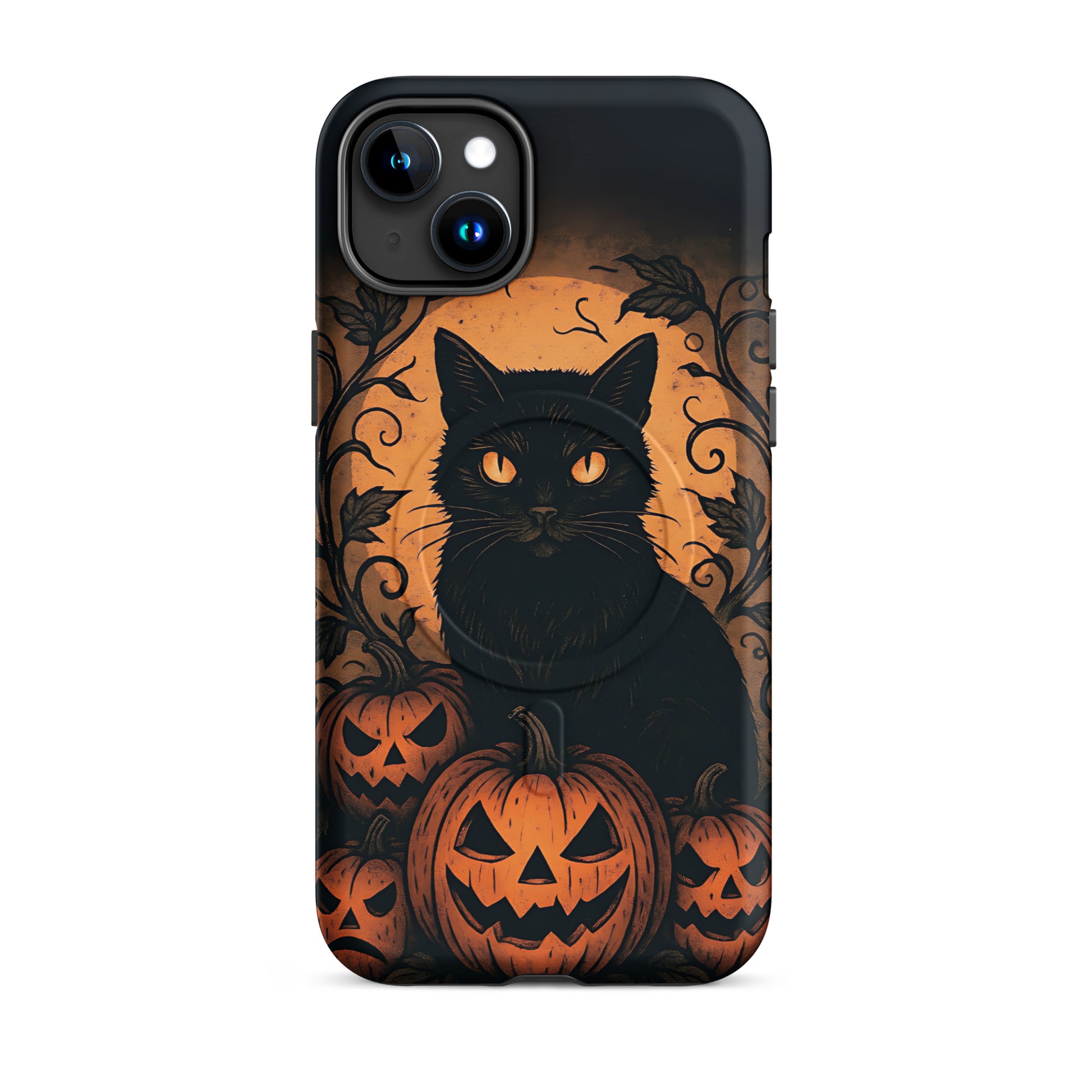 Halloween Harvest Cat iPhone MagSafe Case – Spooky Pumpkin Jack-o’-Lantern Black Cat Cover (14/15/16, Pro & Pro Max)