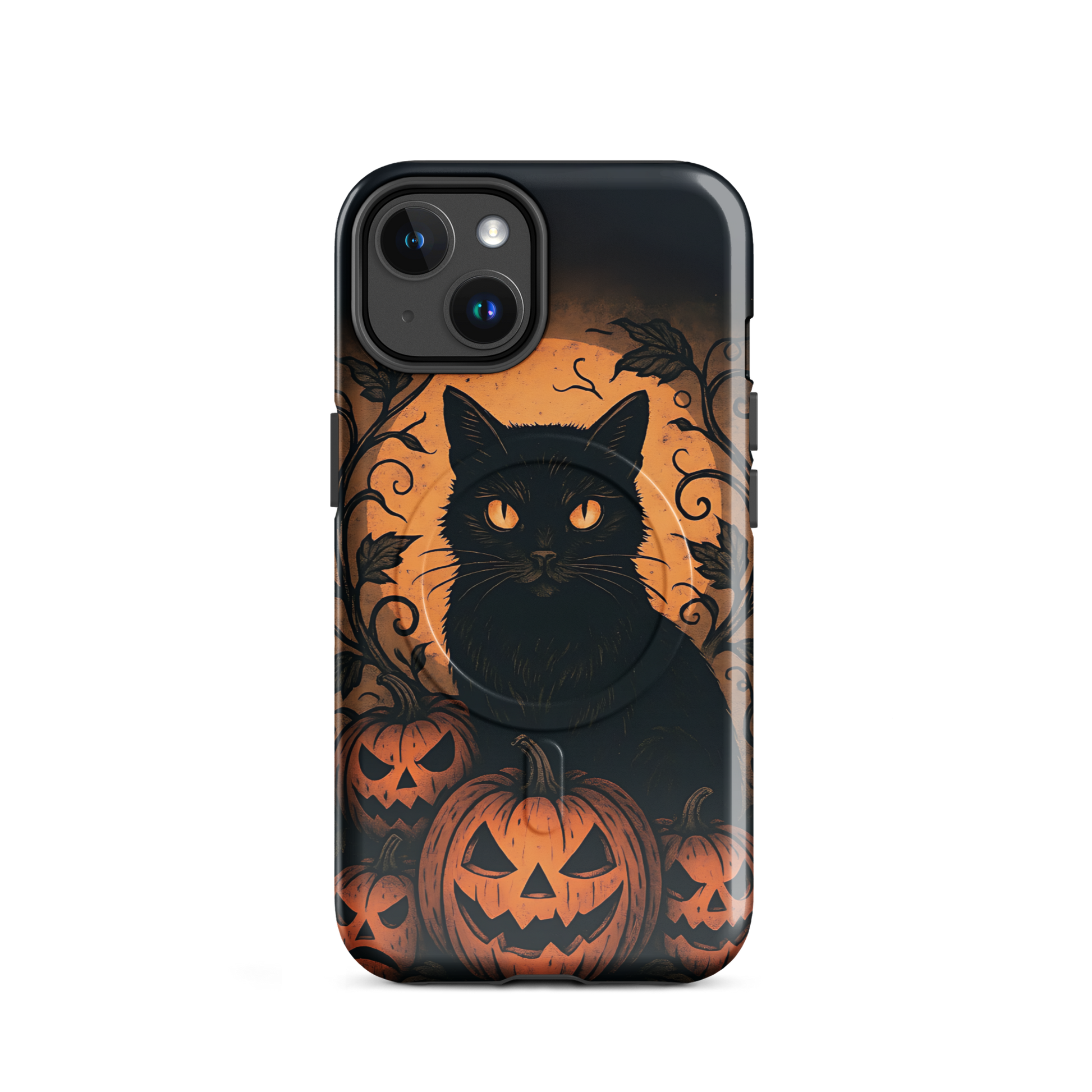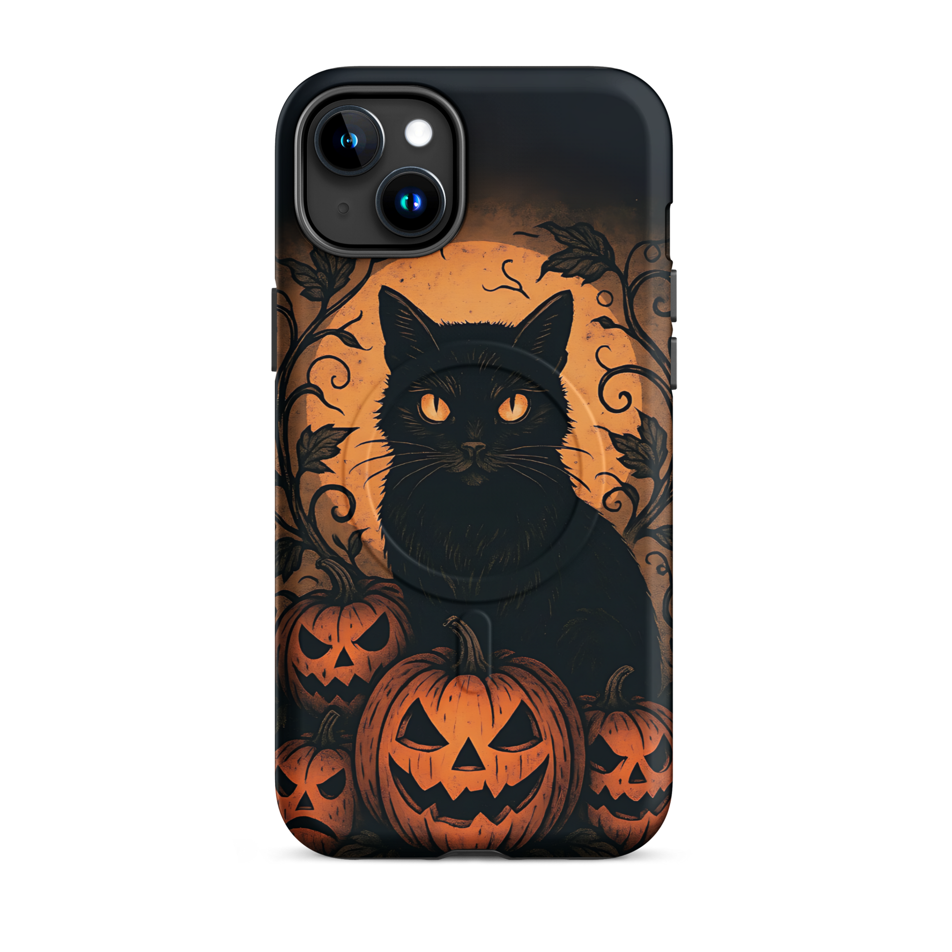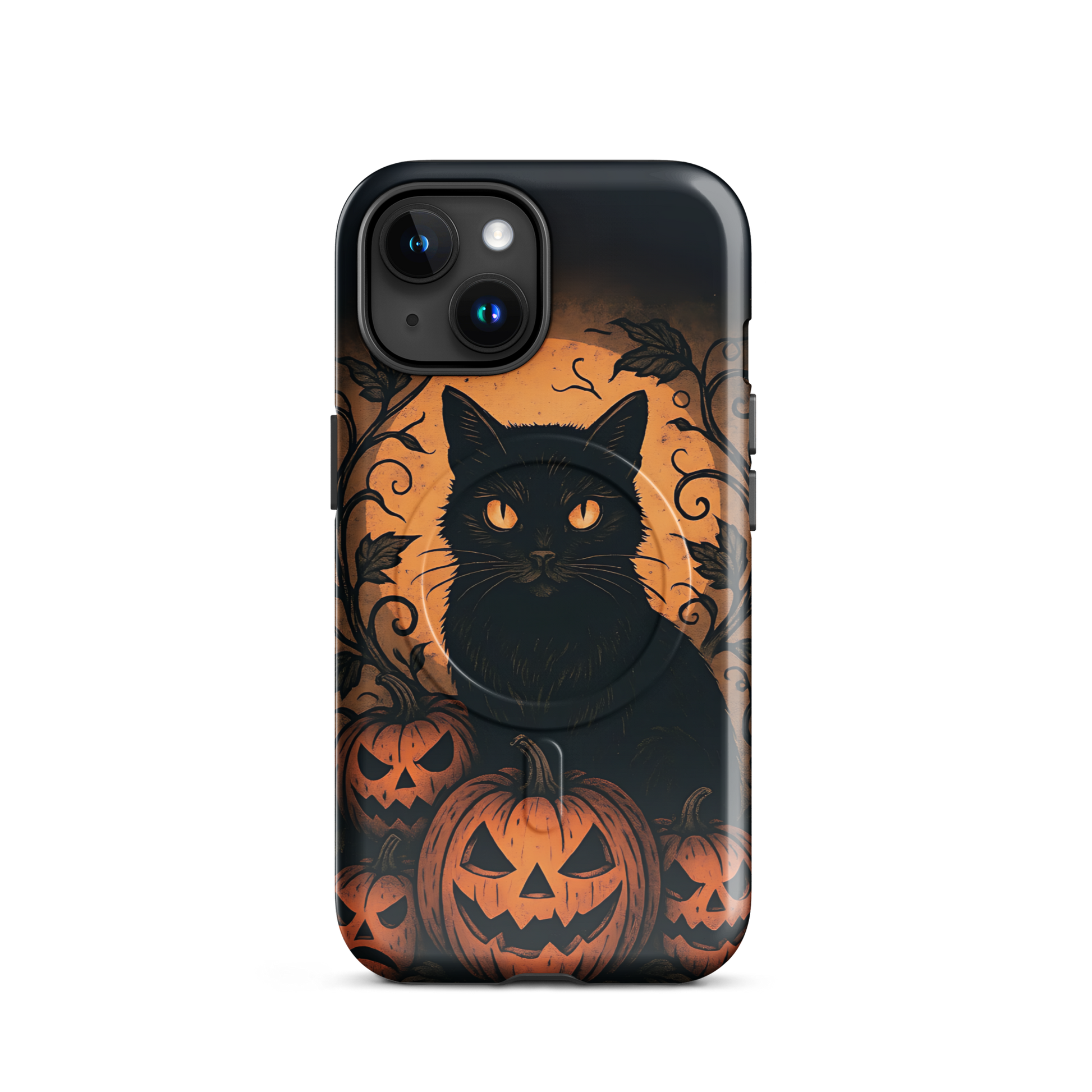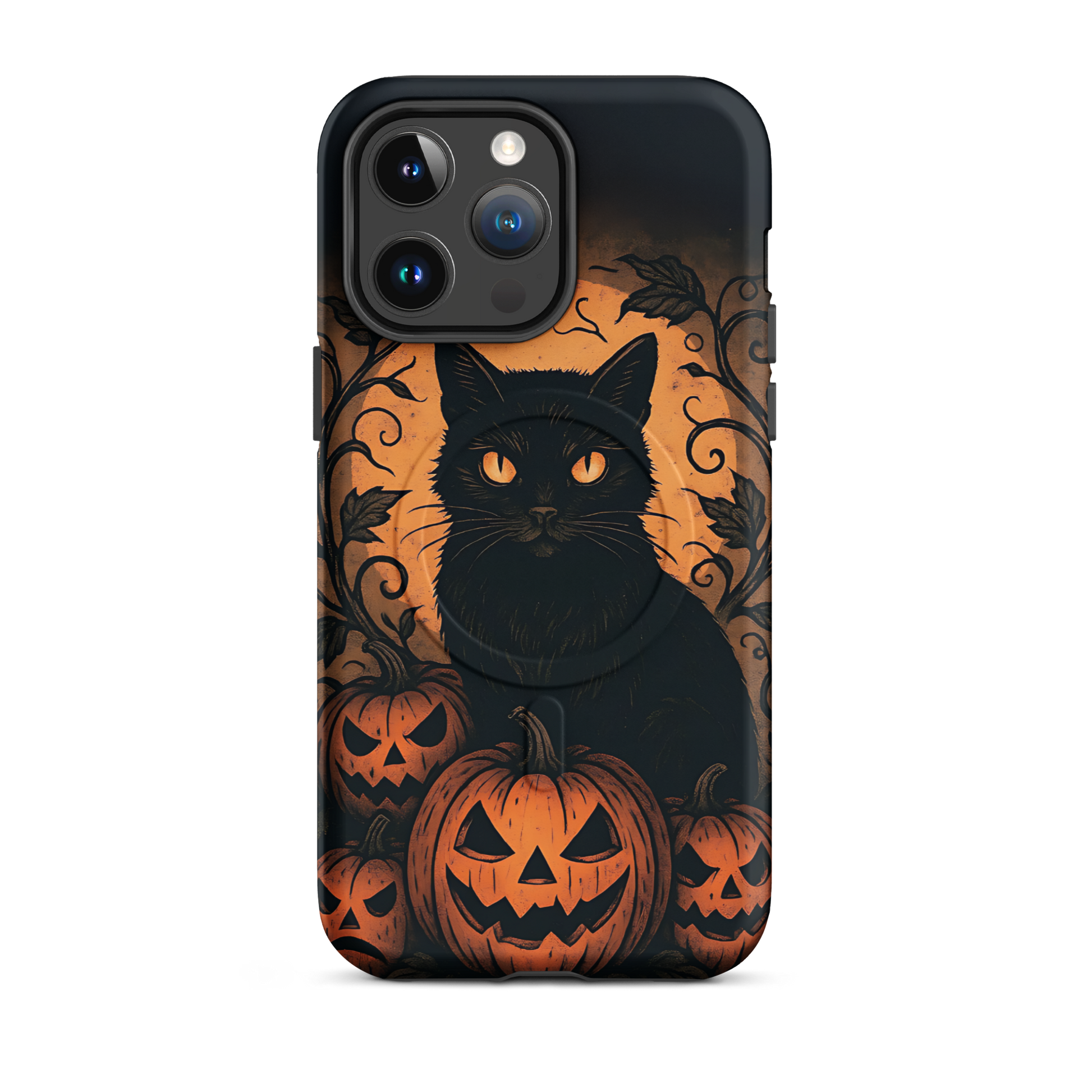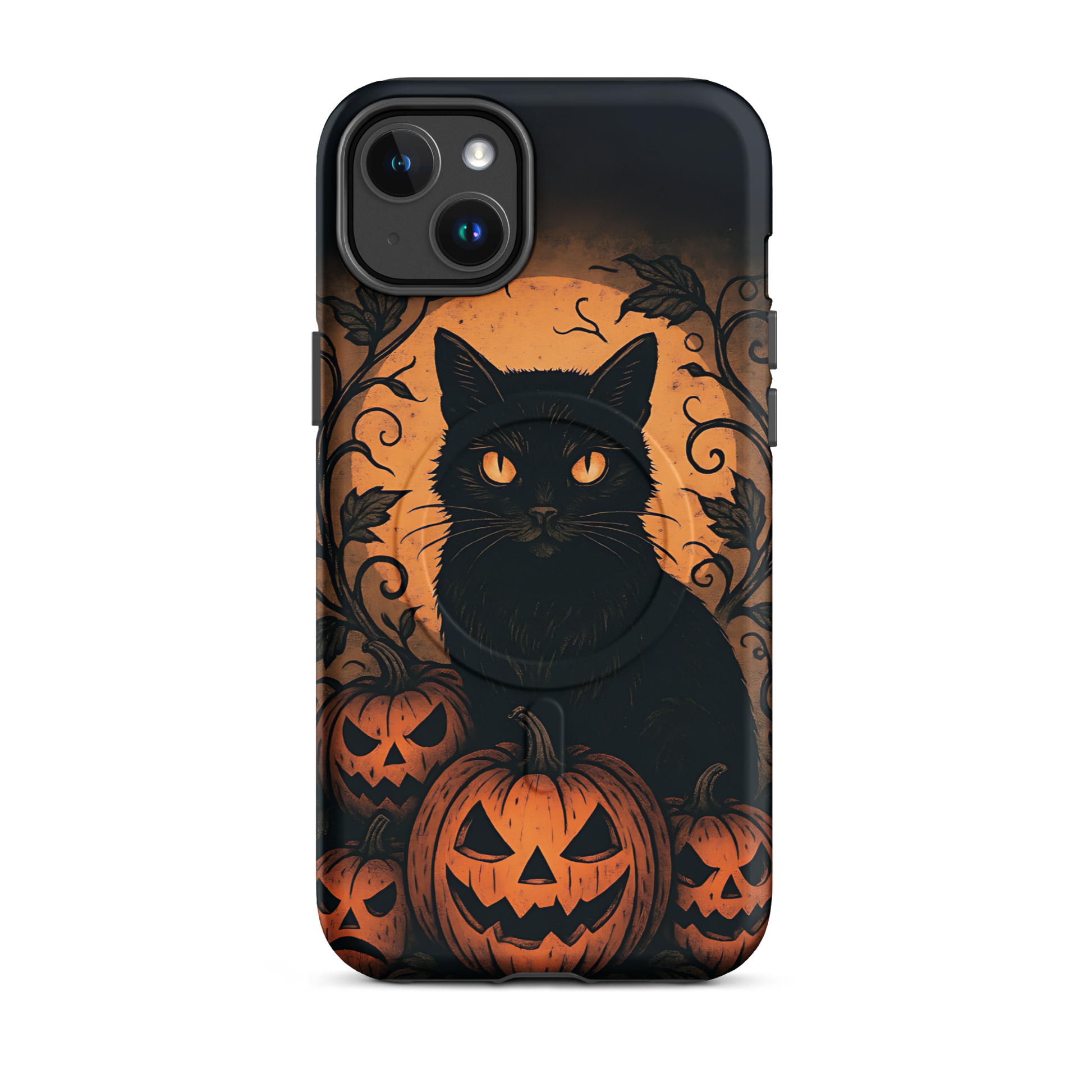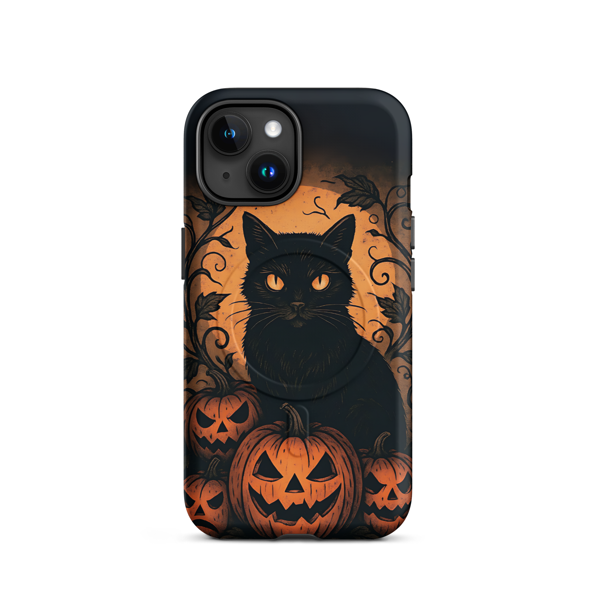 Halloween Harvest Cat iPhone MagSafe Case – Spooky Pumpkin Jack-o’-Lantern Black Cat Cover (14/15/16, Pro & Pro Max)