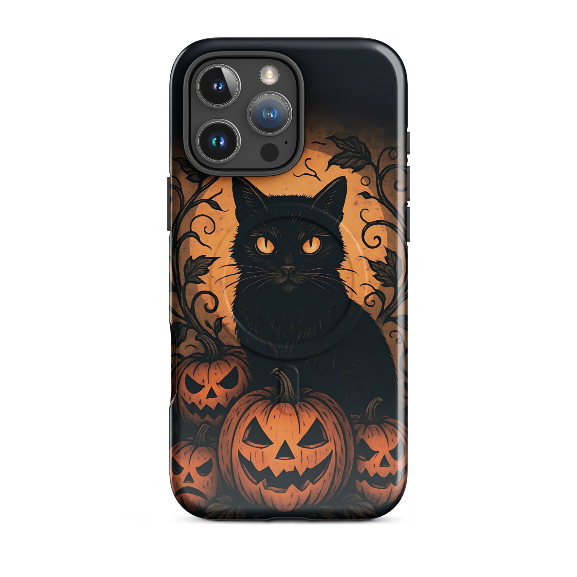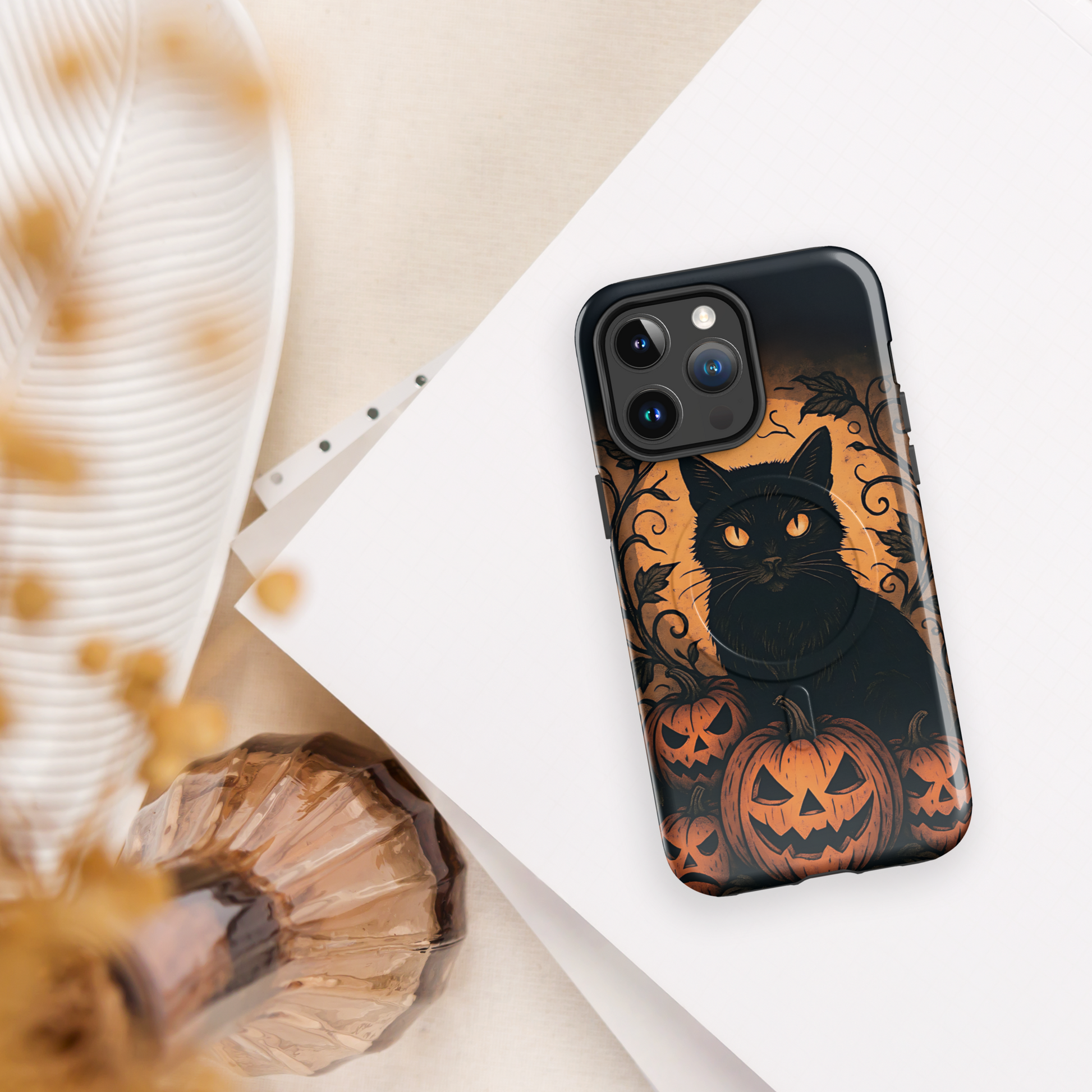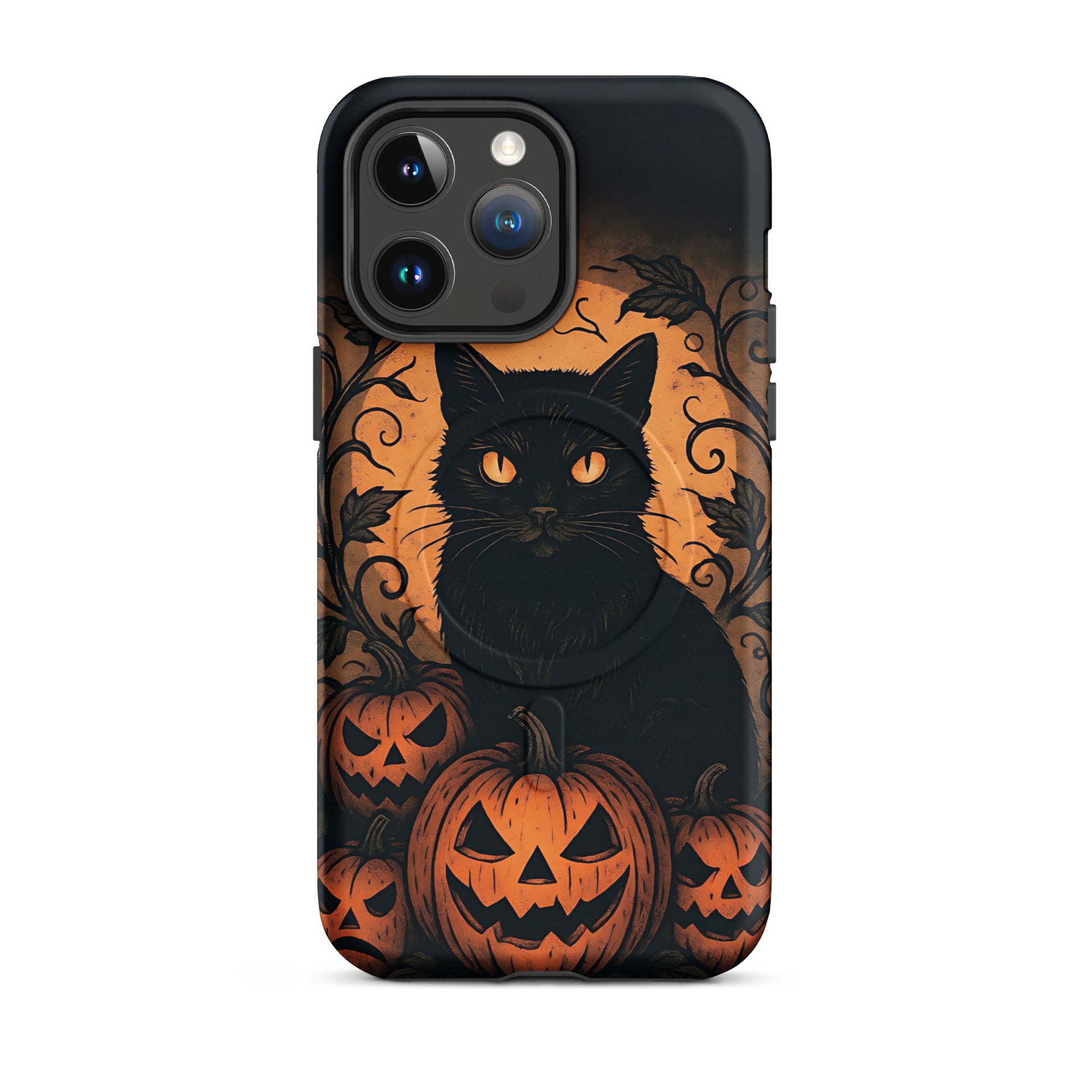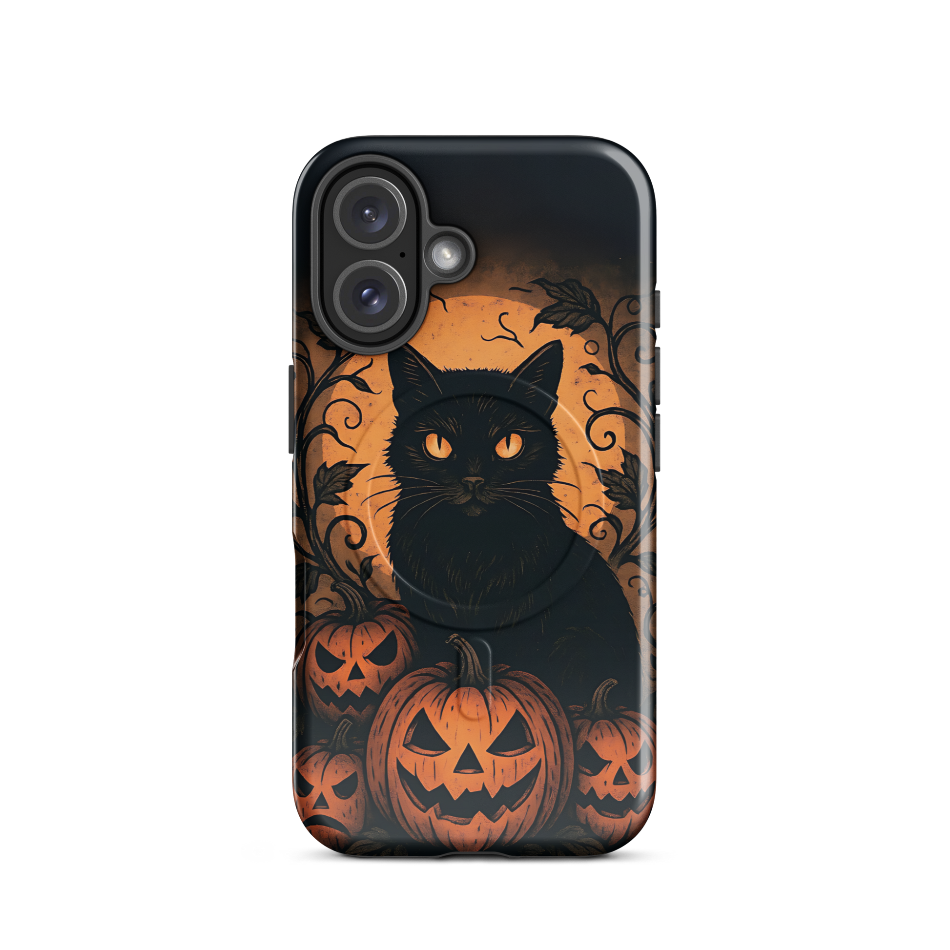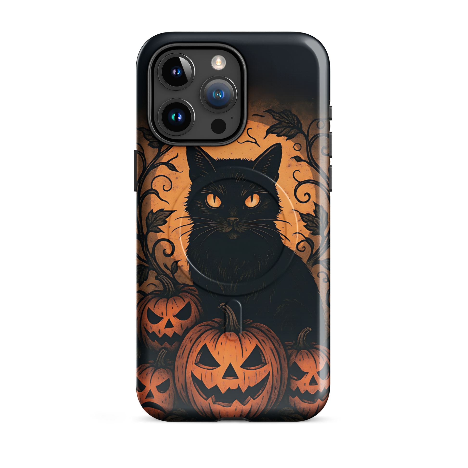 Halloween Harvest Cat iPhone MagSafe Case – Spooky Pumpkin Jack-o’-Lantern Black Cat Cover (14/15/16, Pro & Pro Max)