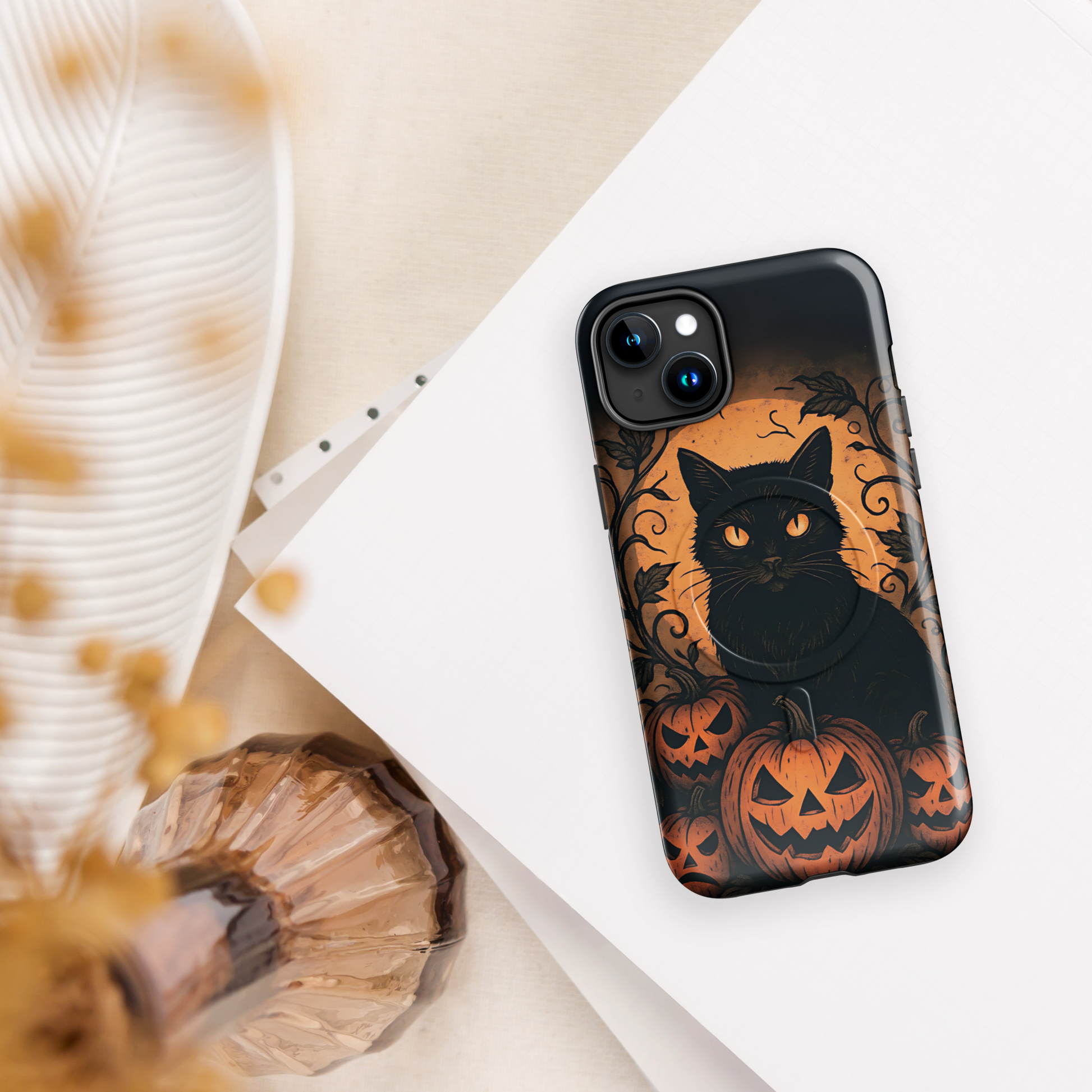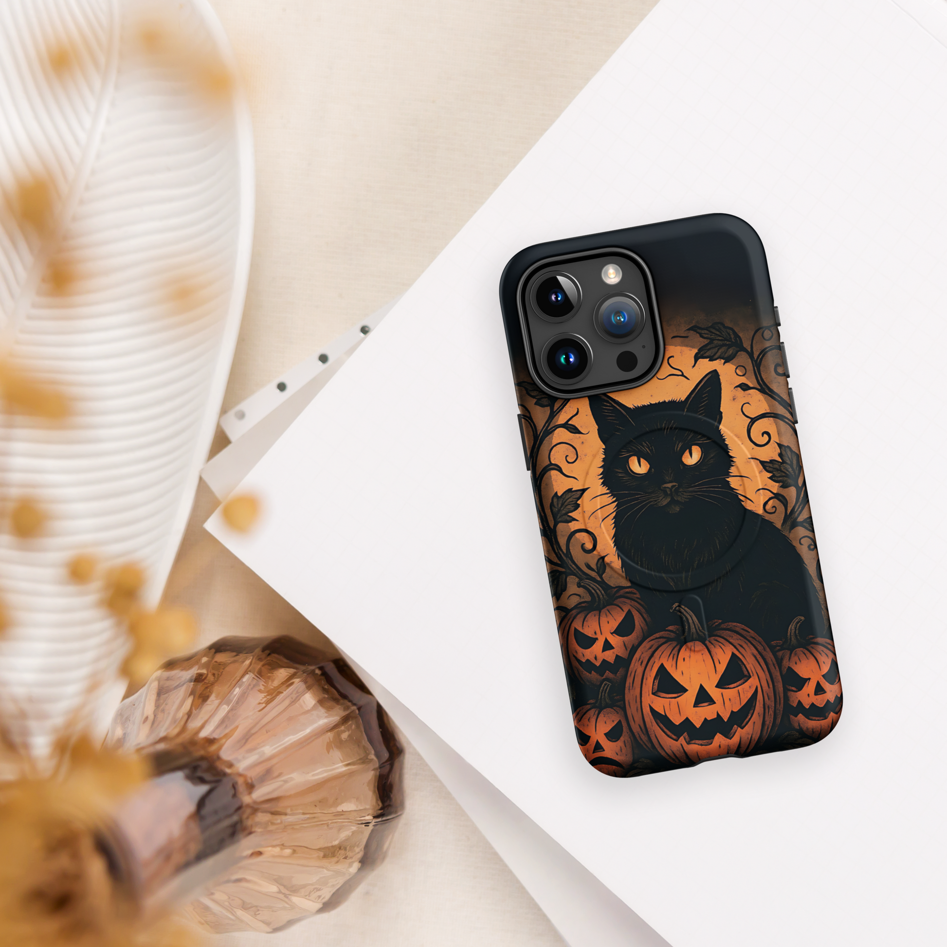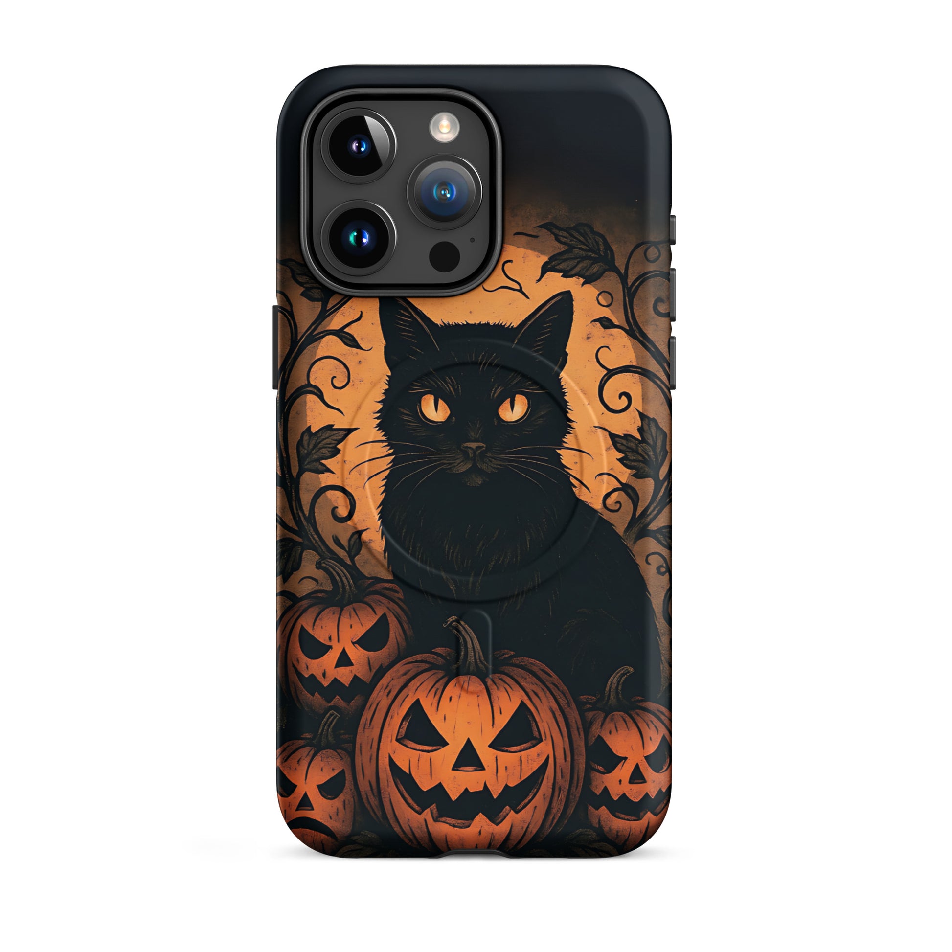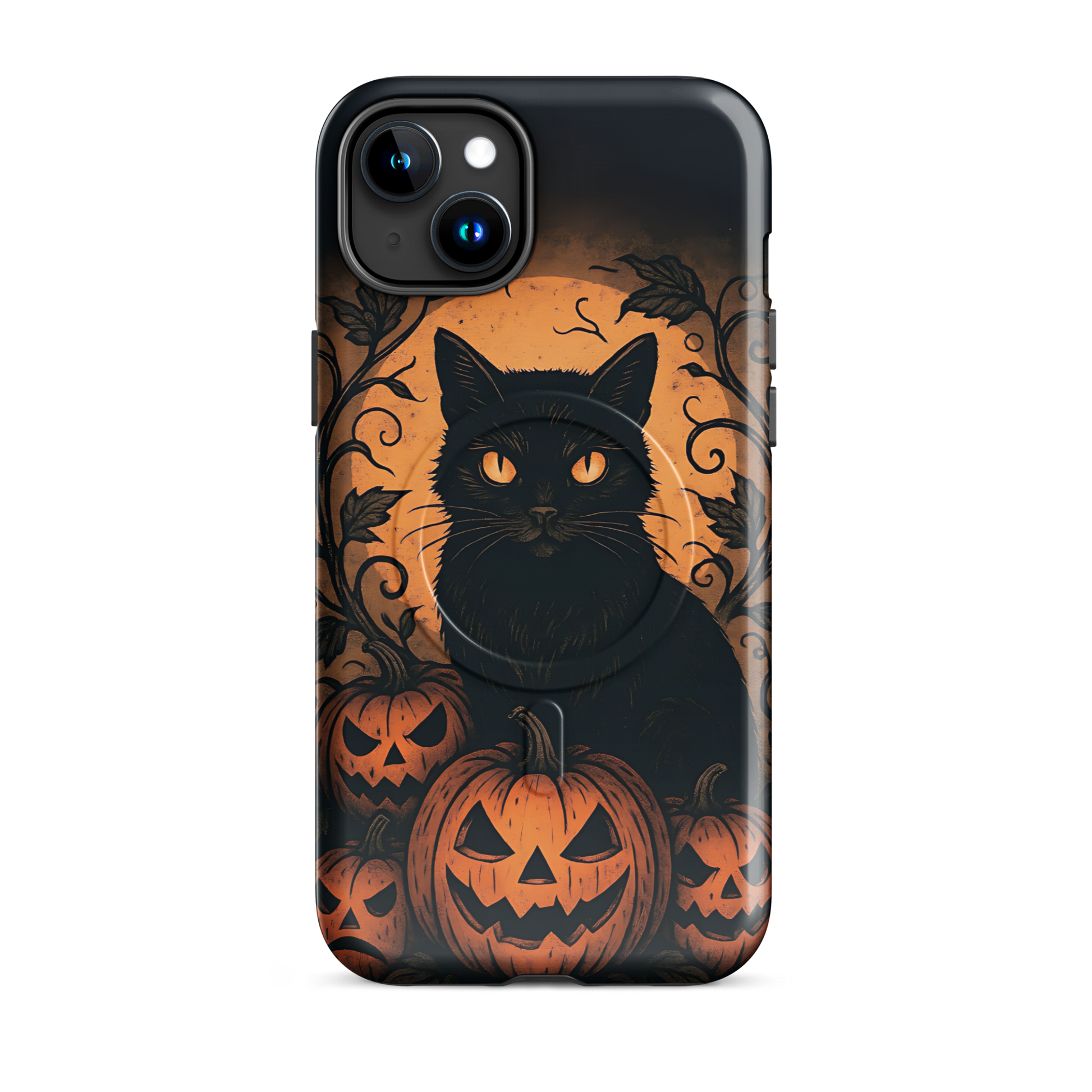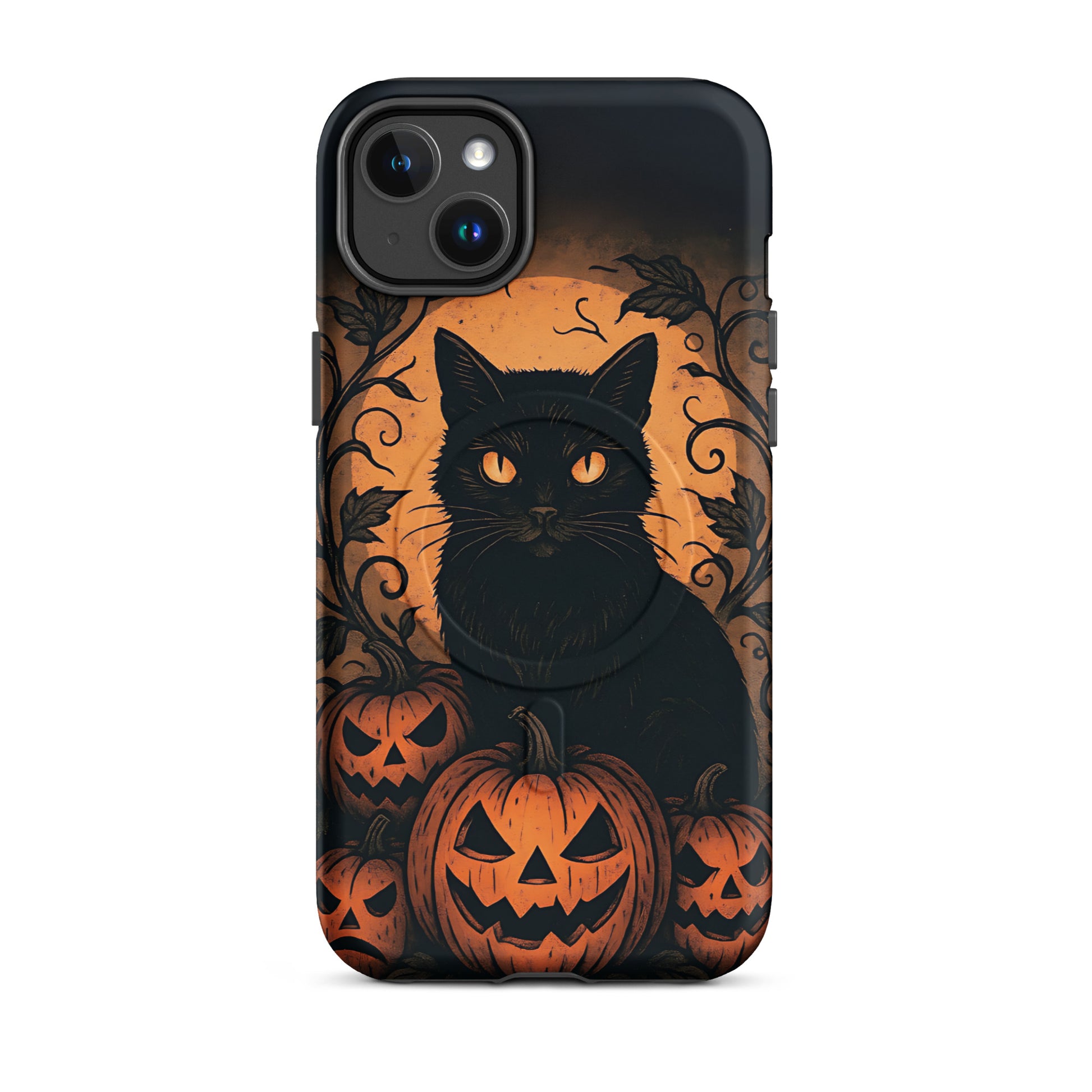 Halloween Harvest Cat iPhone MagSafe Case – Spooky Pumpkin Jack-o’-Lantern Black Cat Cover (14/15/16, Pro & Pro Max)