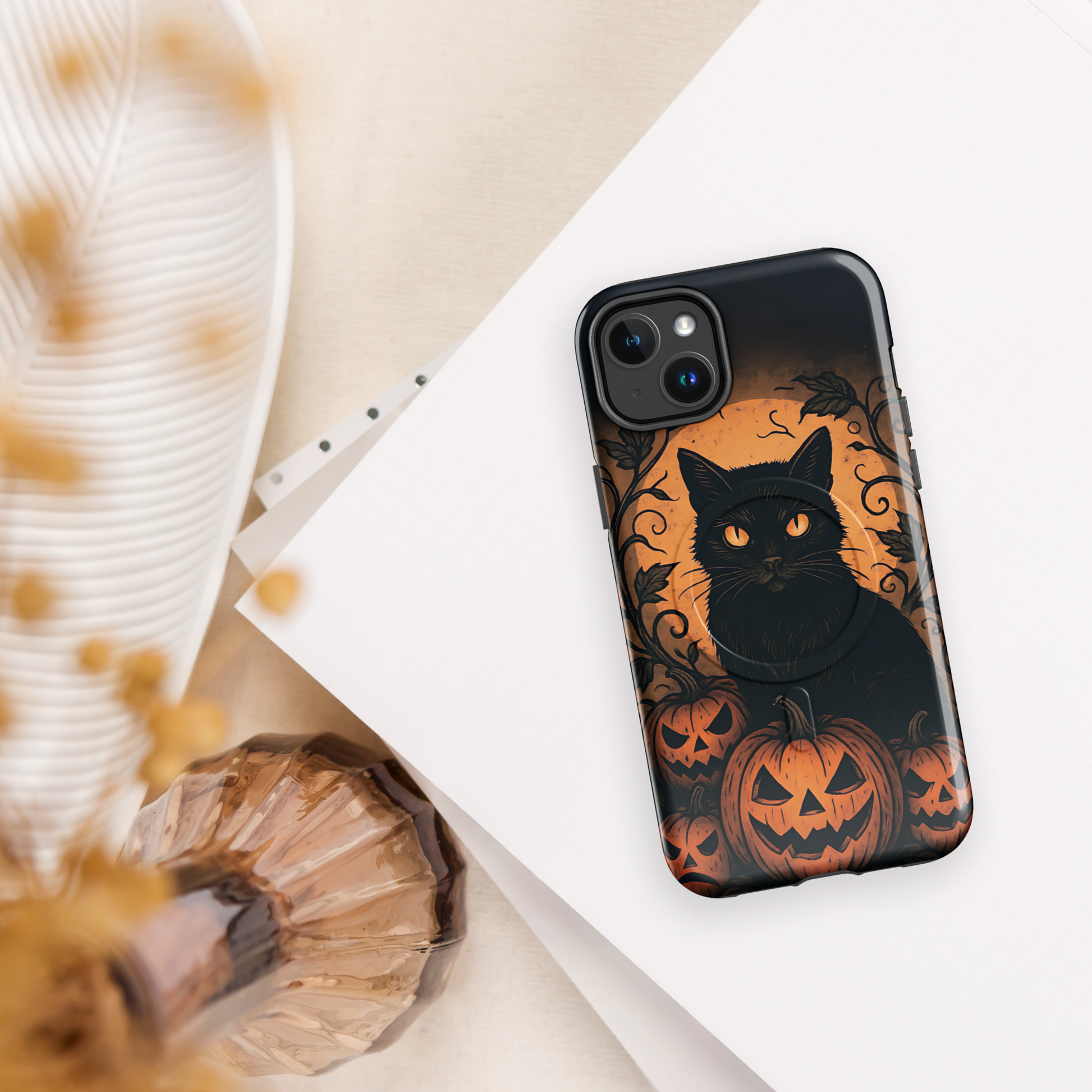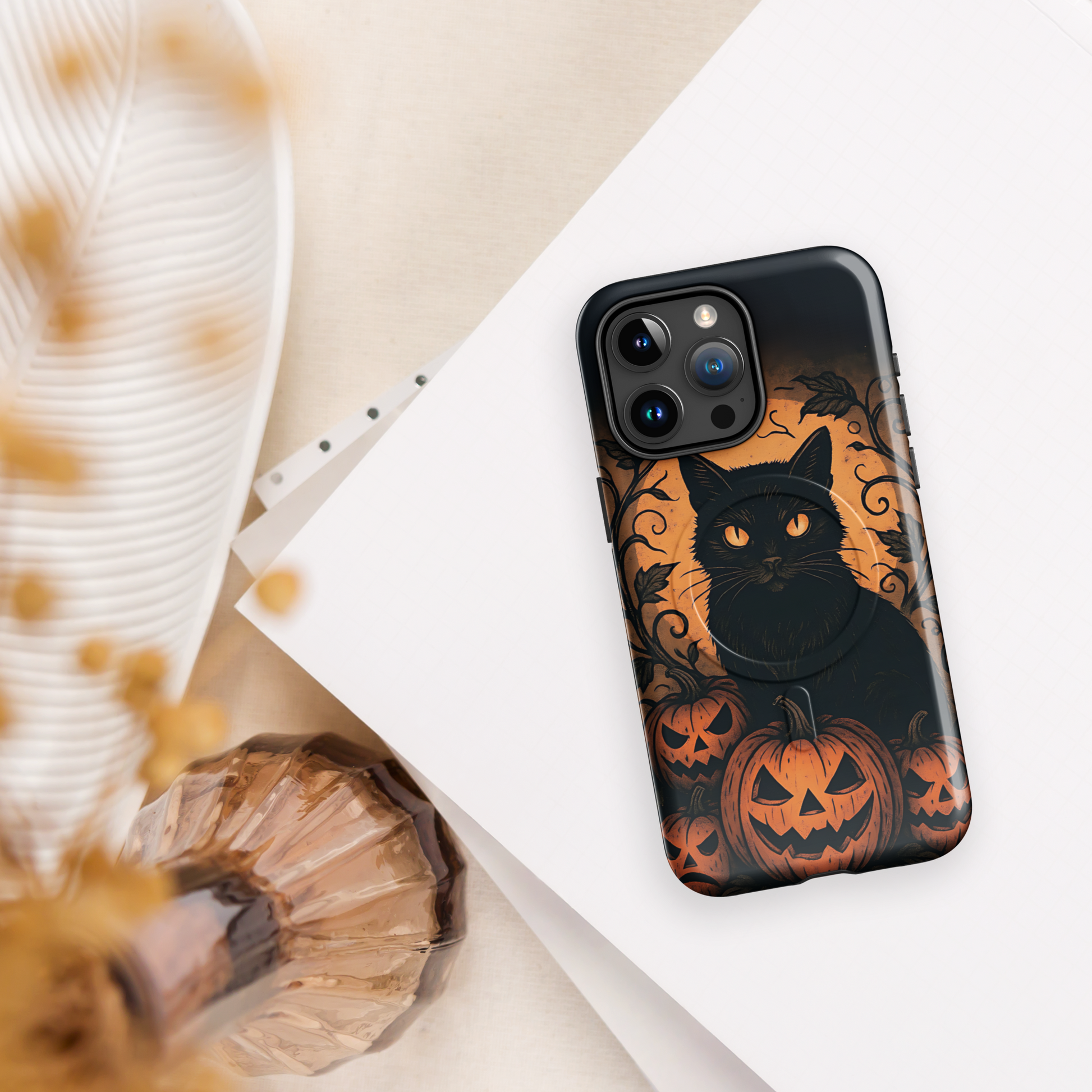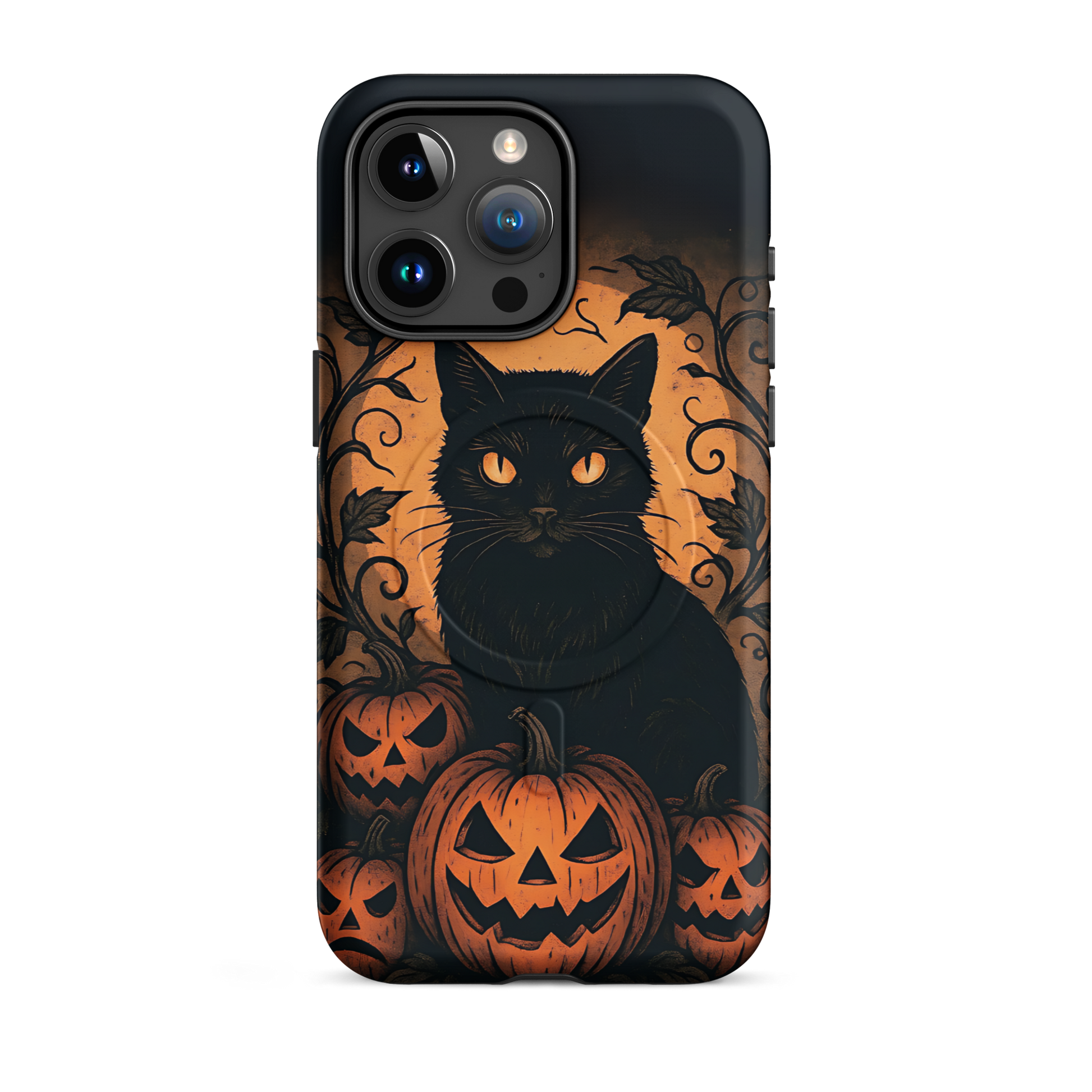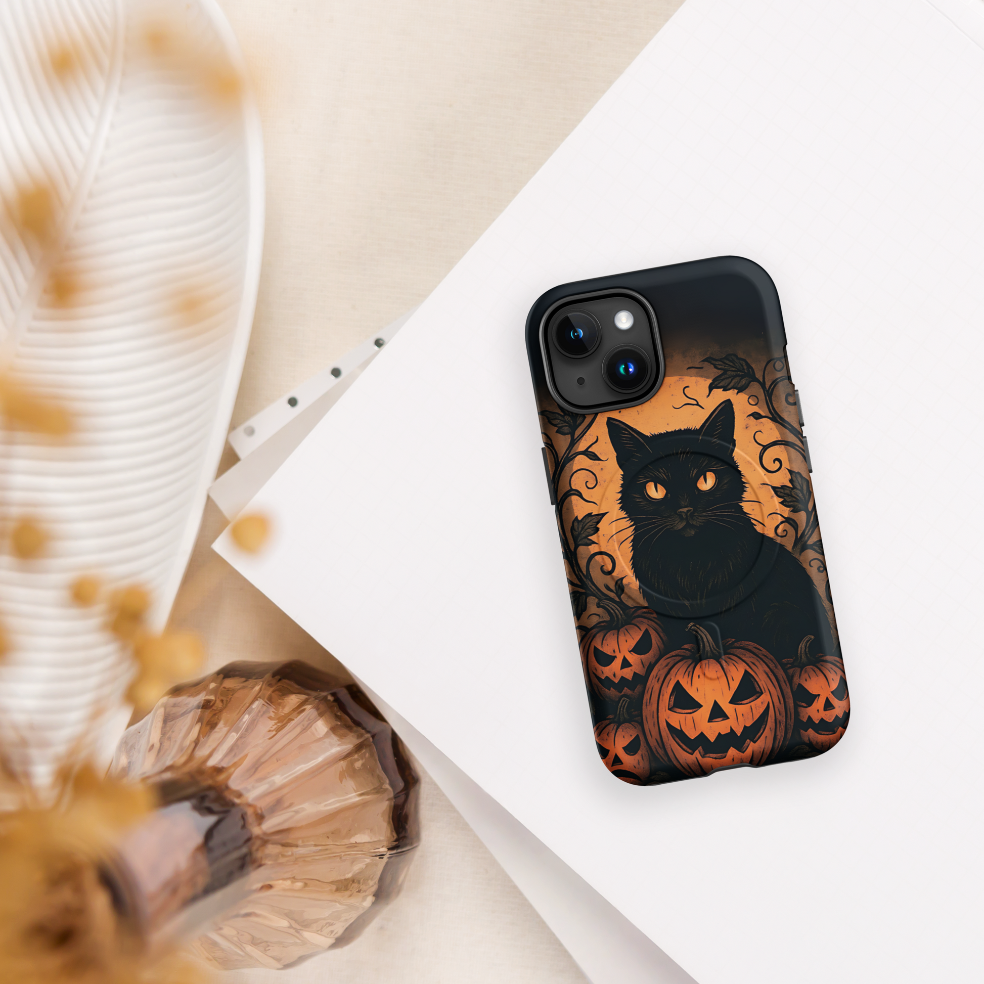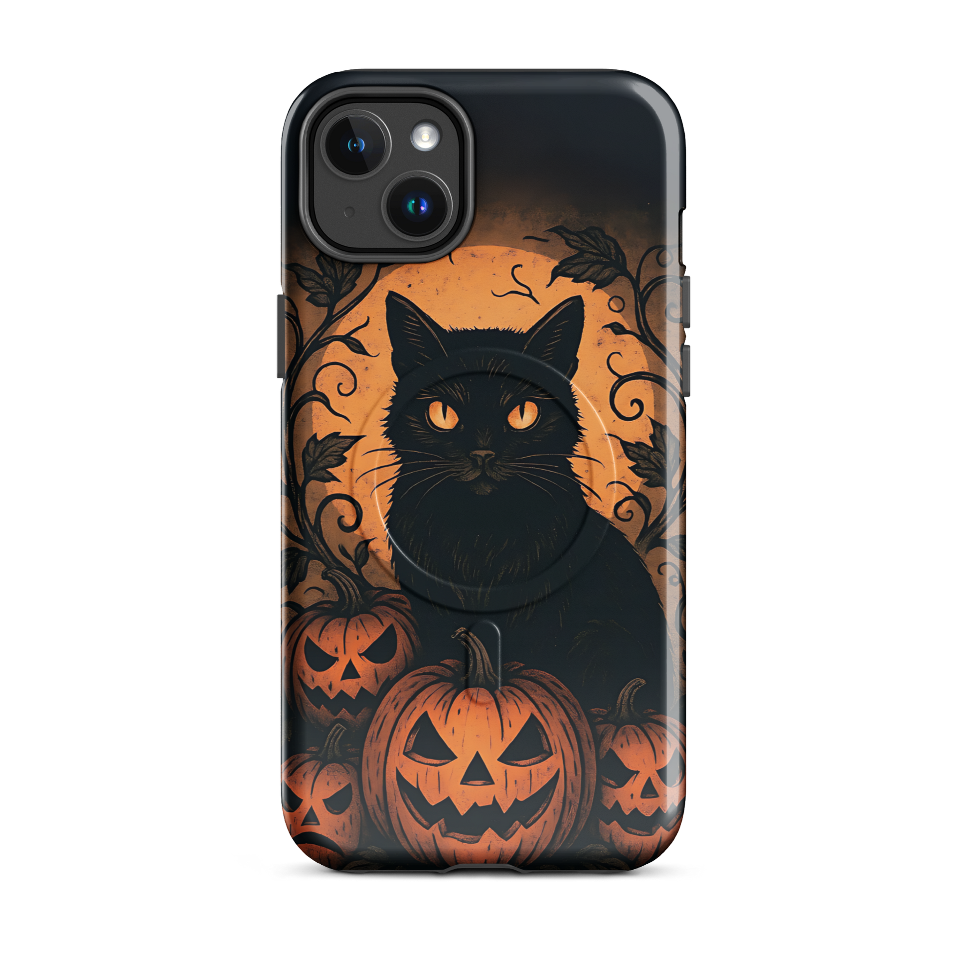 Halloween Harvest Cat iPhone MagSafe Case – Spooky Pumpkin Jack-o’-Lantern Black Cat Cover (14/15/16, Pro & Pro Max)