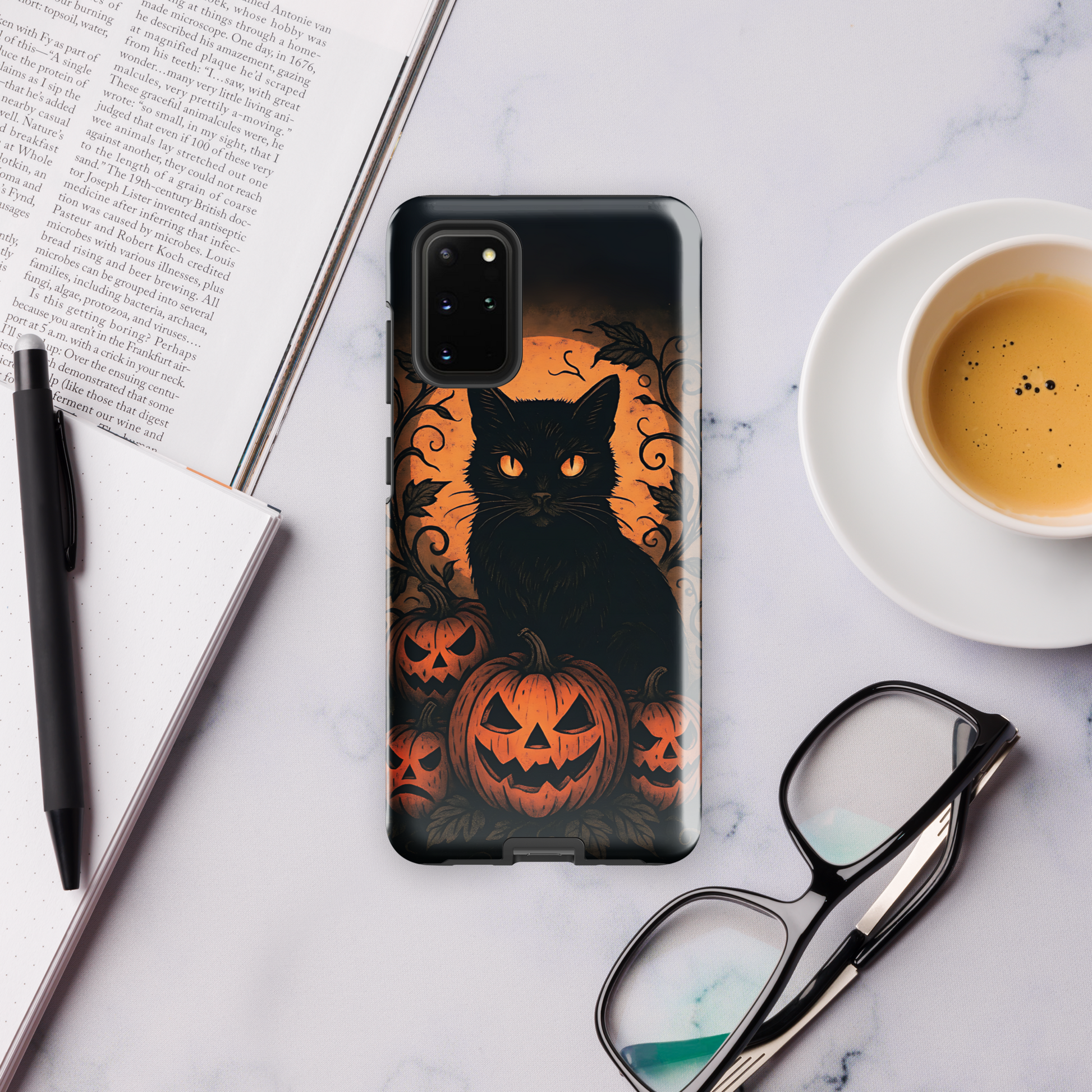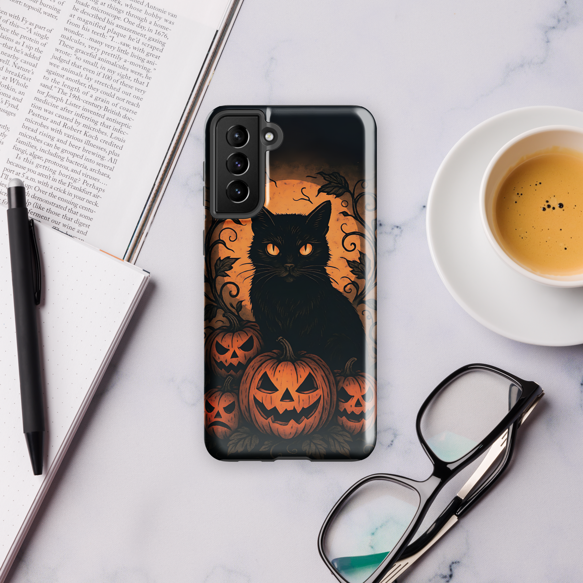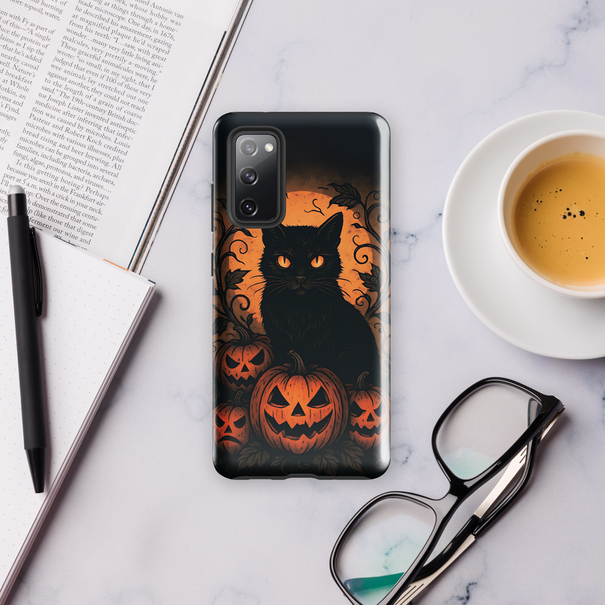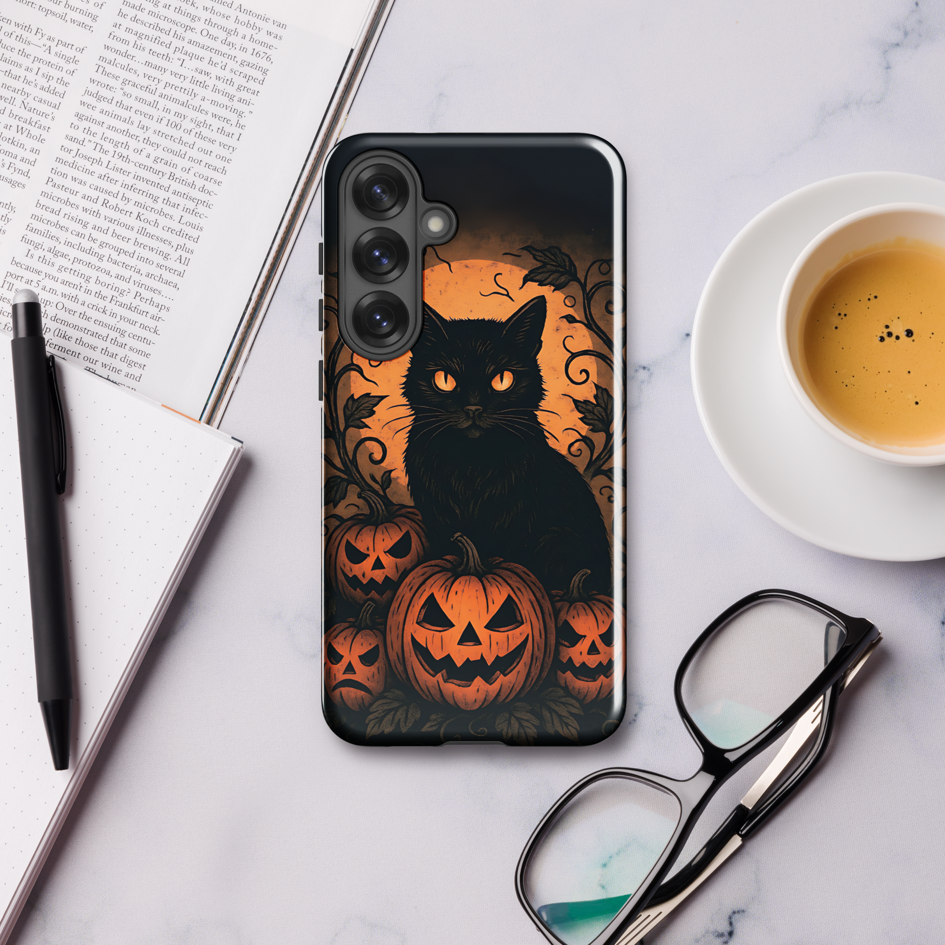 Halloween Harvest Cat Tough Samsung Case – Spooky Black Cat & Pumpkin Design (Galaxy S10–S25, Plus & Ultra)