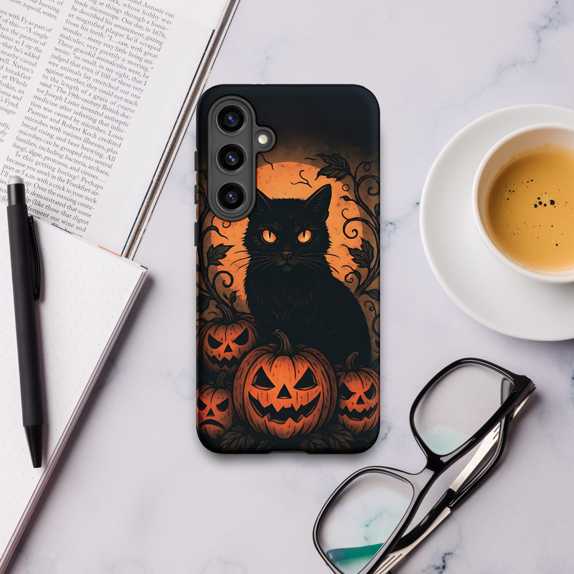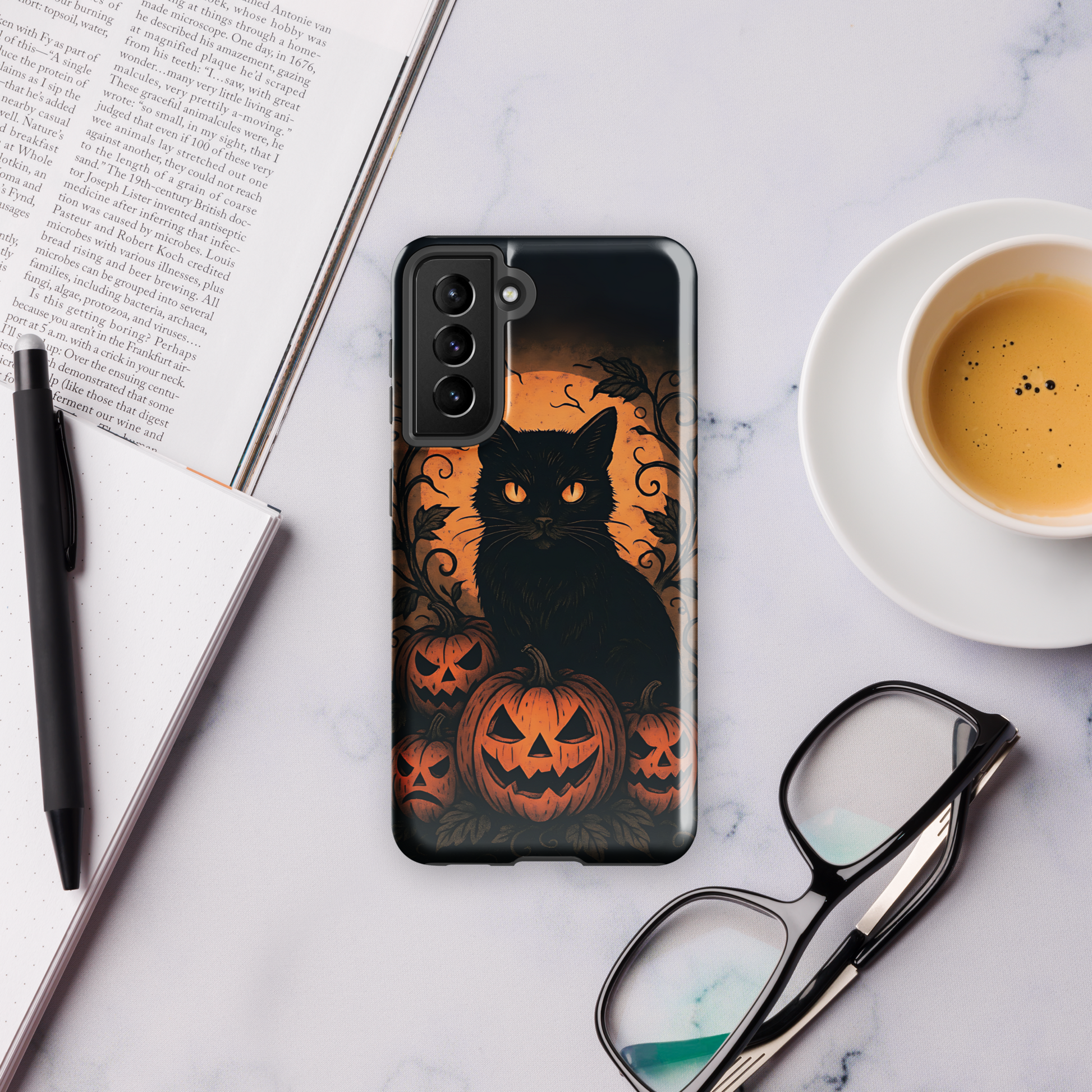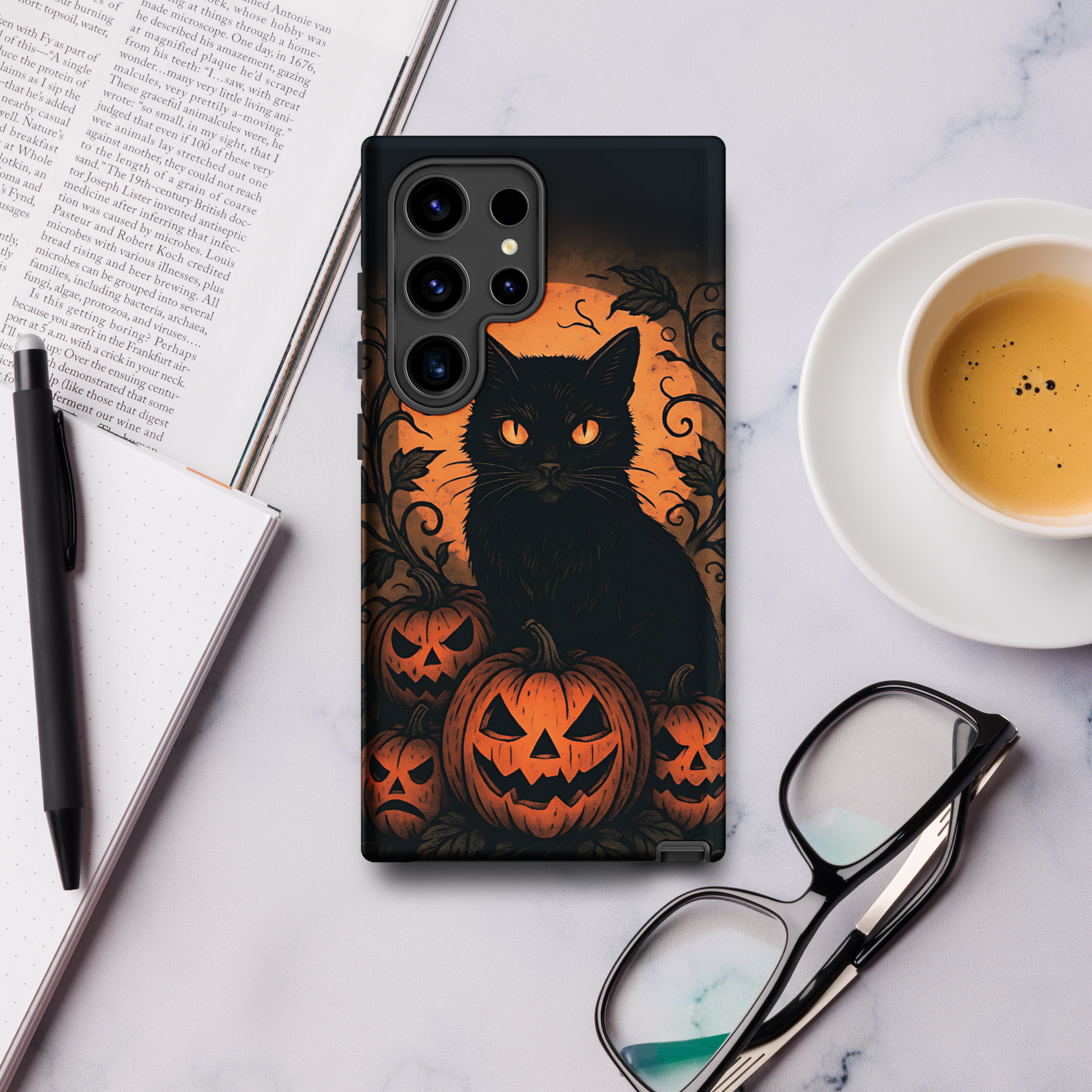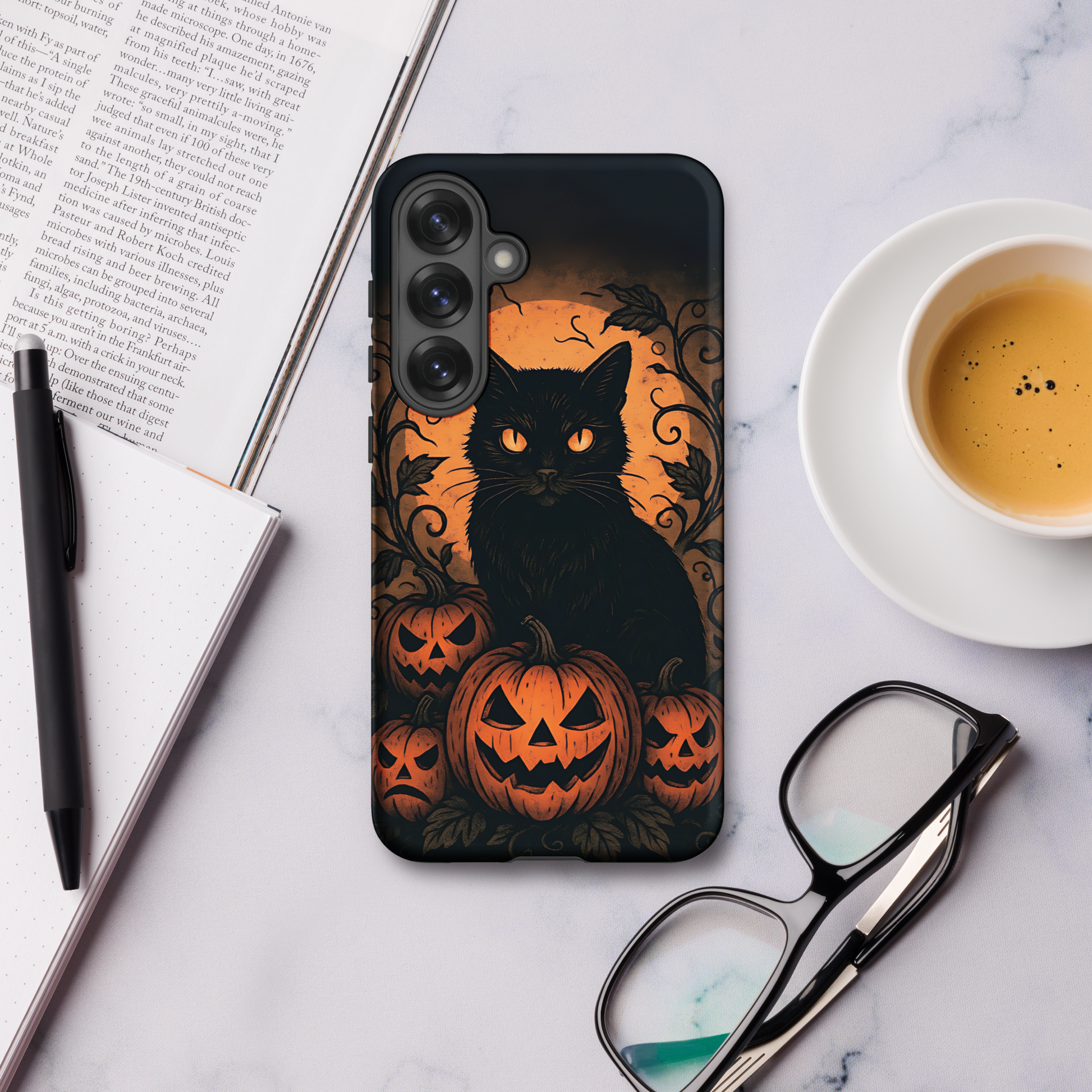 Halloween Harvest Cat Tough Samsung Case – Spooky Black Cat & Pumpkin Design (Galaxy S10–S25, Plus & Ultra)