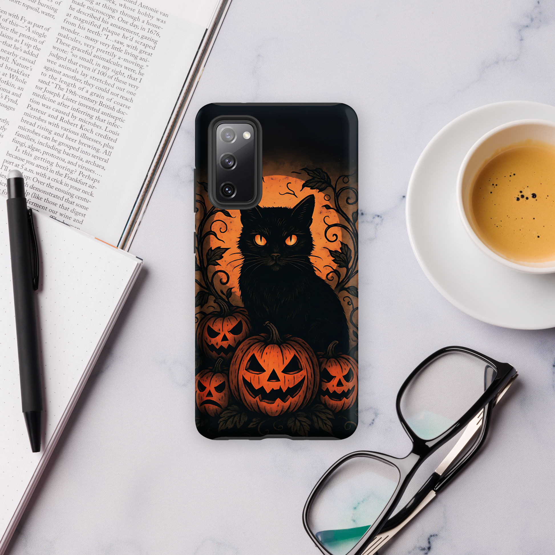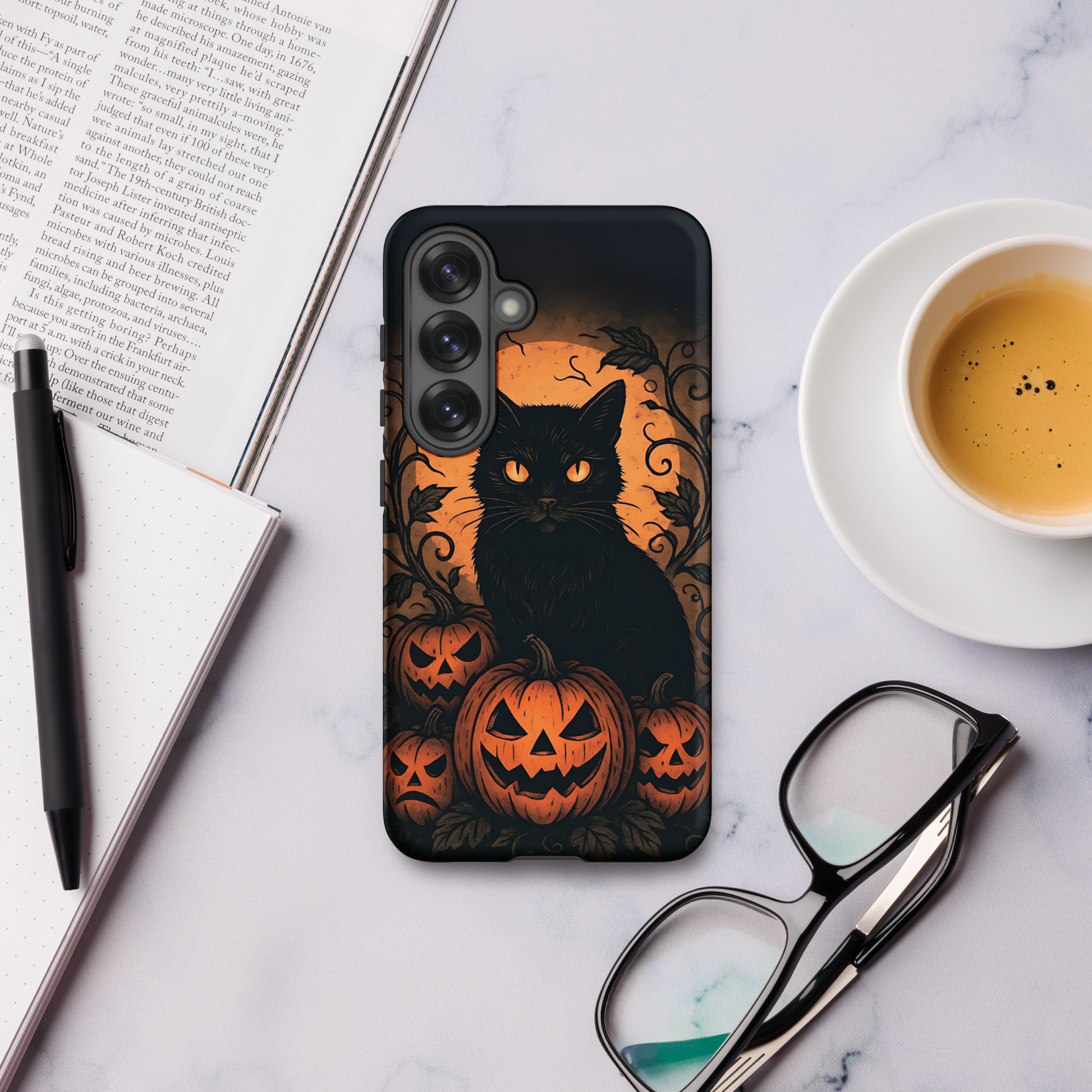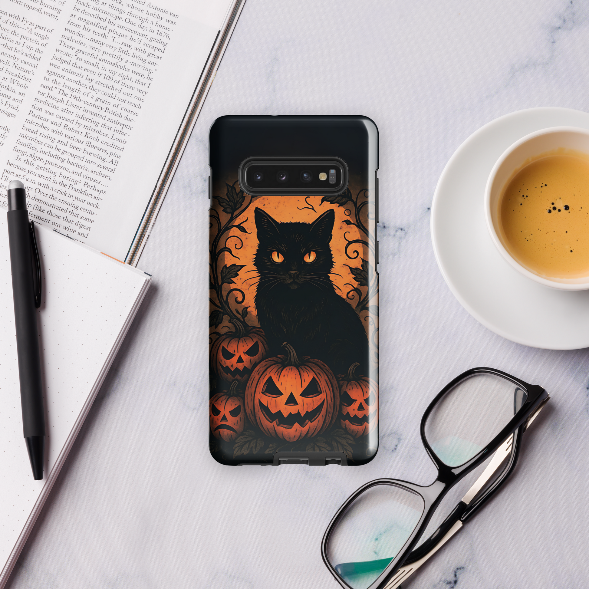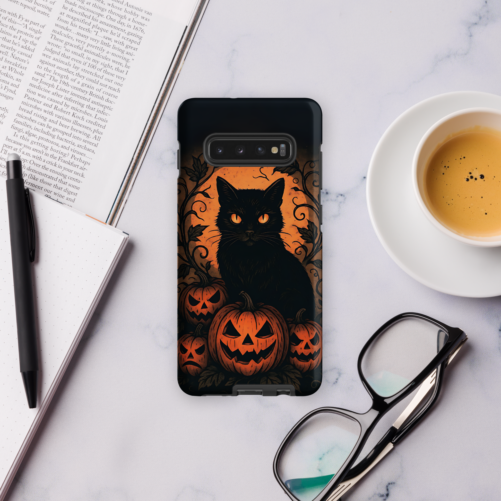 Halloween Harvest Cat Tough Samsung Case – Spooky Black Cat & Pumpkin Design (Galaxy S10–S25, Plus & Ultra)