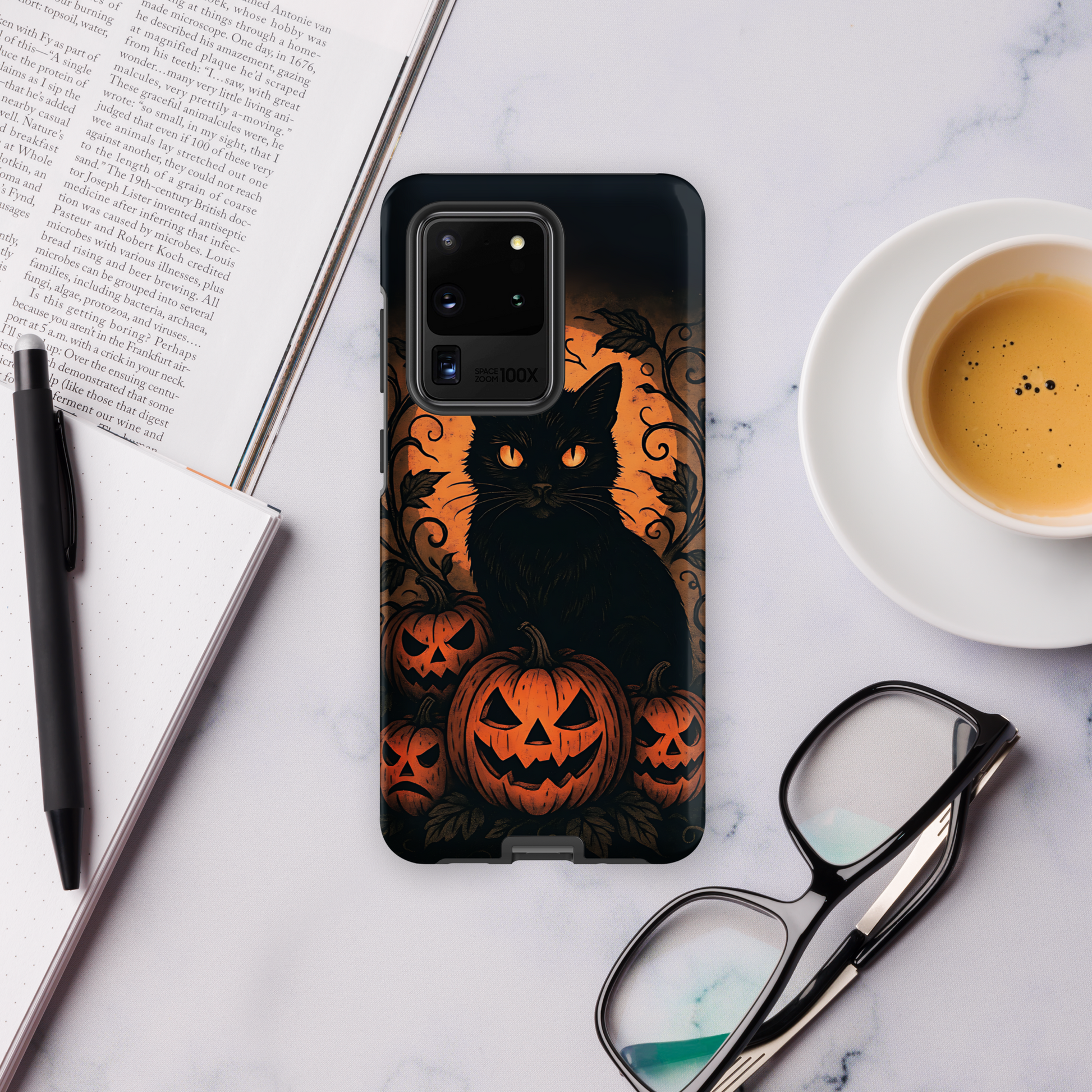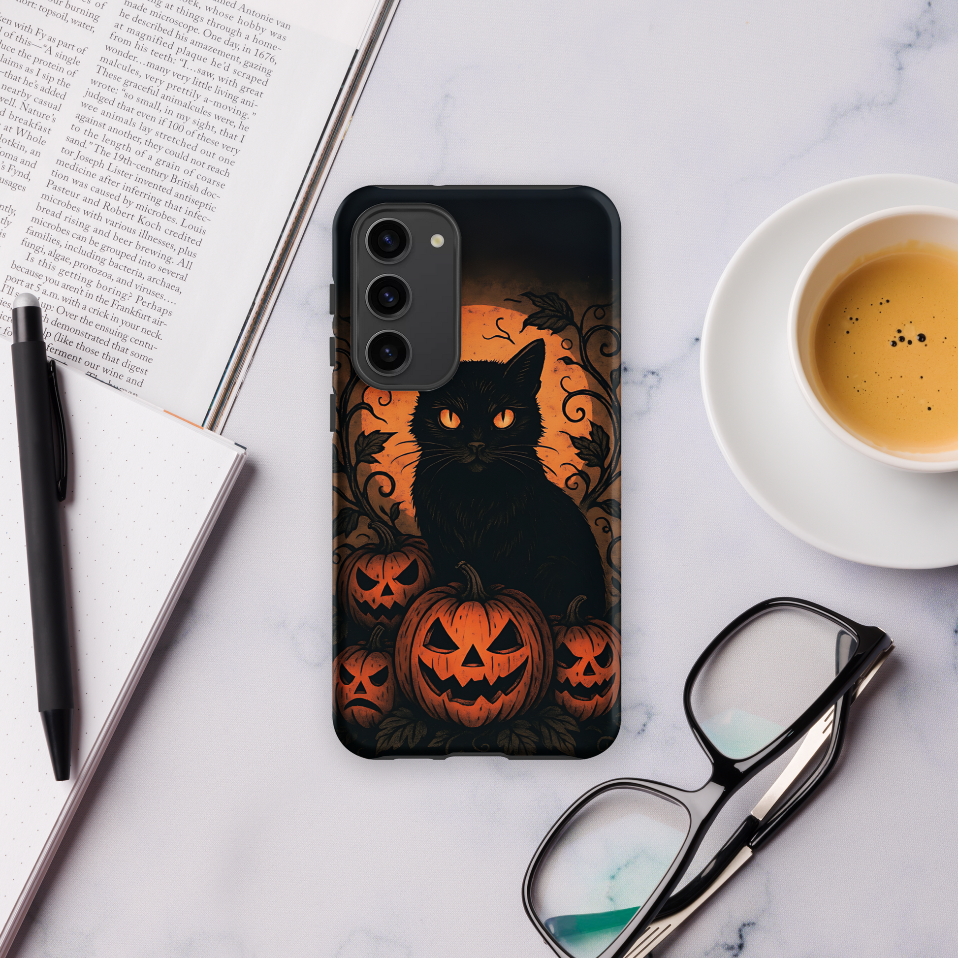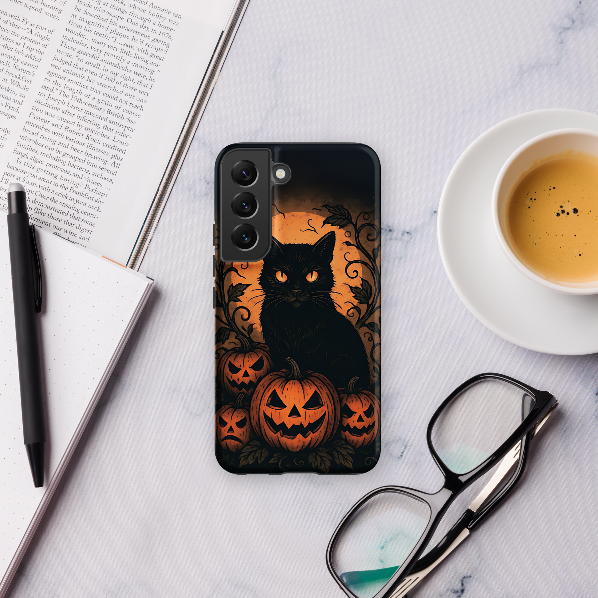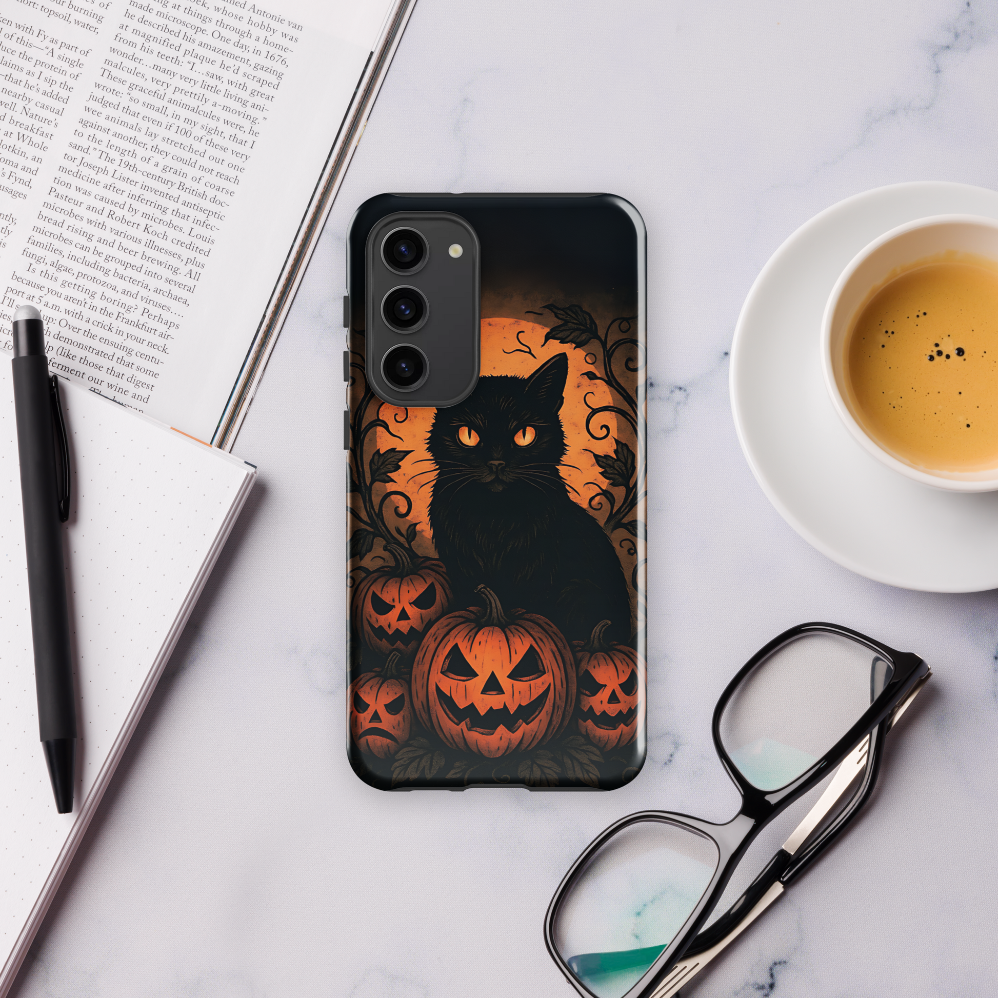 Halloween Harvest Cat Tough Samsung Case – Spooky Black Cat & Pumpkin Design (Galaxy S10–S25, Plus & Ultra)