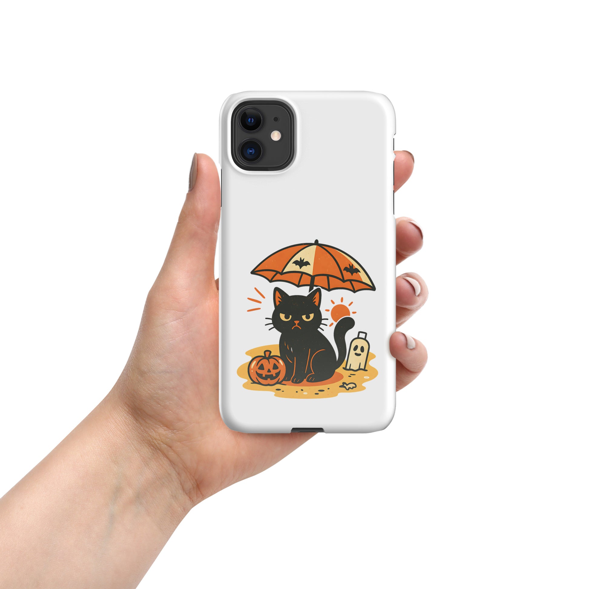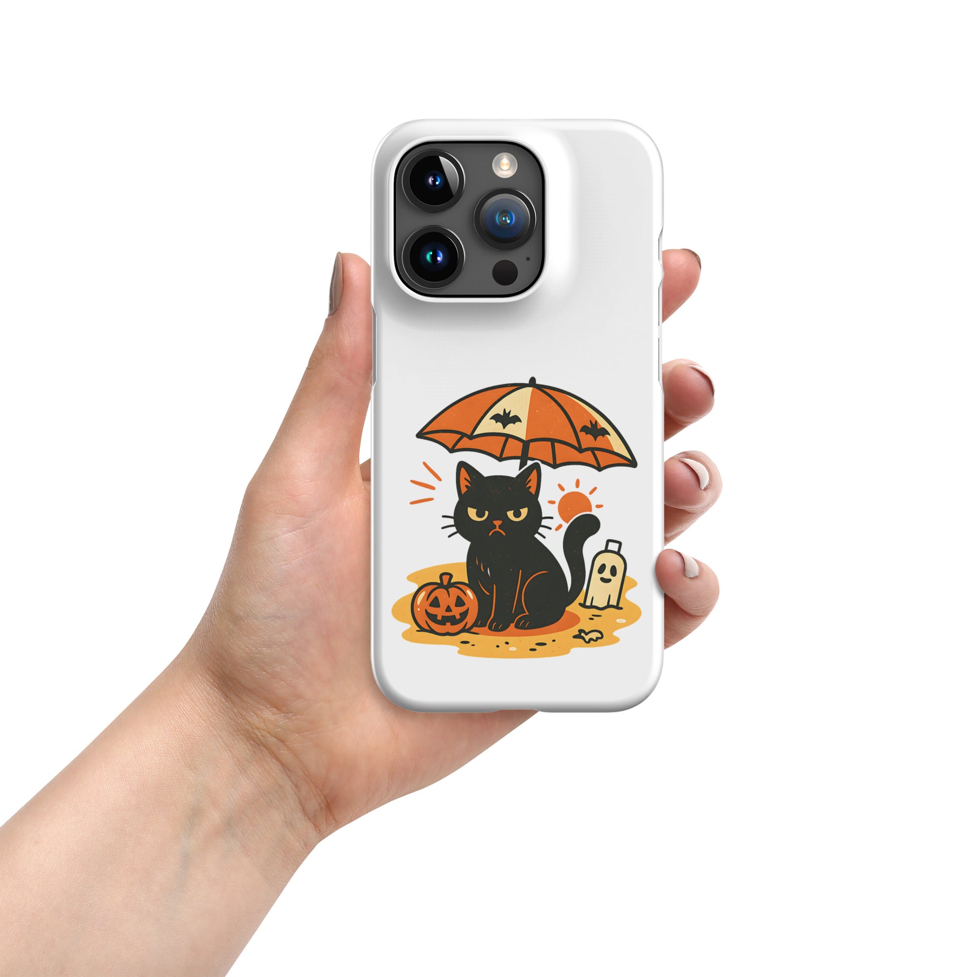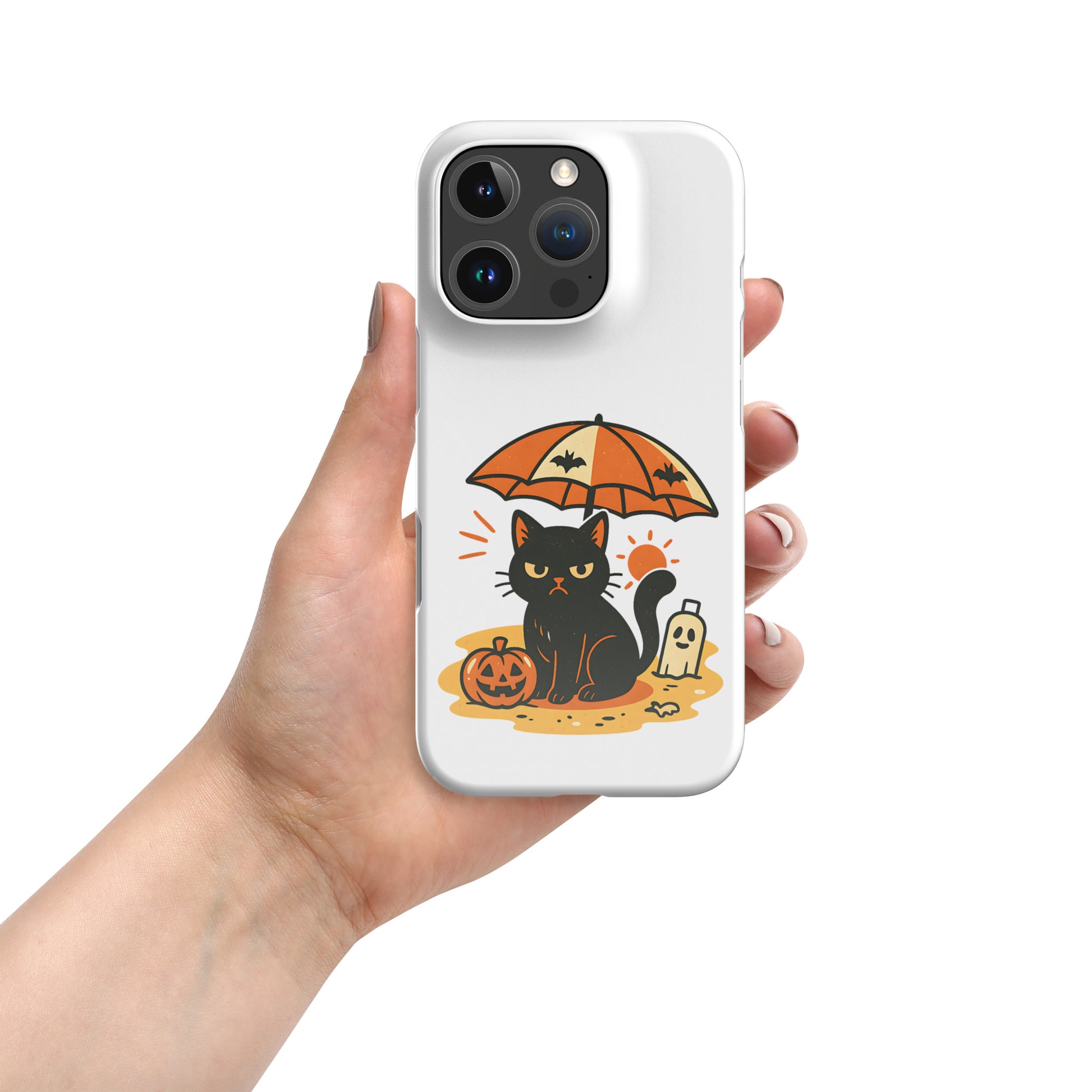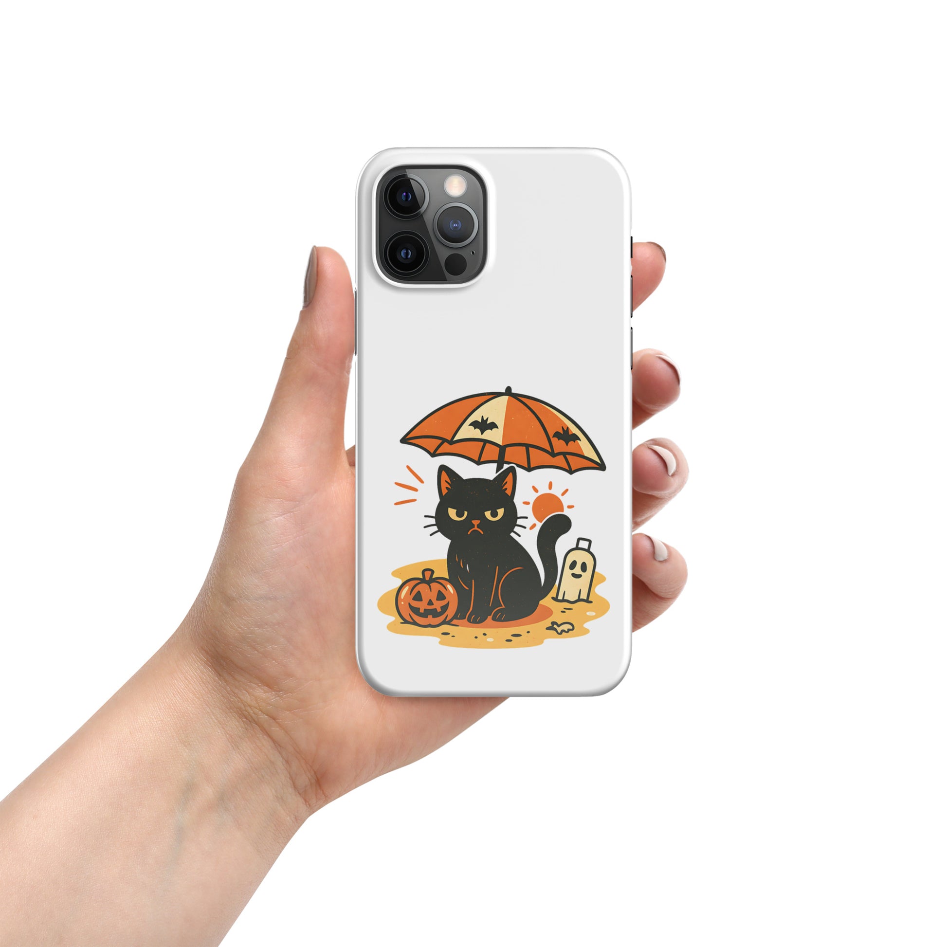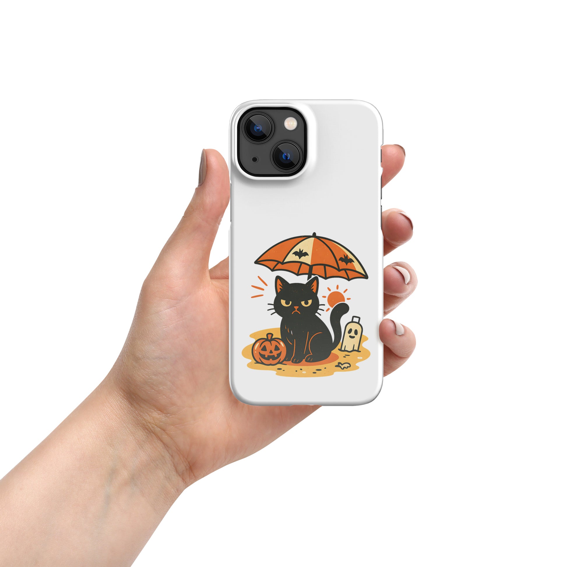 Summerween Grumpy Cat Snap iPhone Case β Slim Spooky Cover (11, 12, 13, 14, 15, 16, Pro, Pro Max)