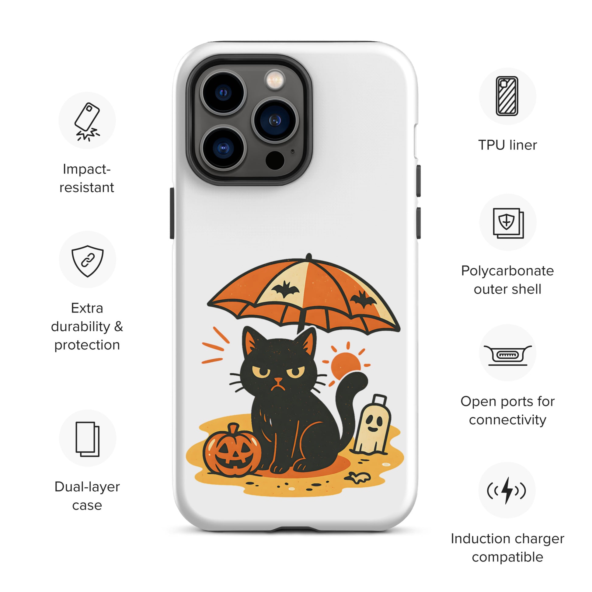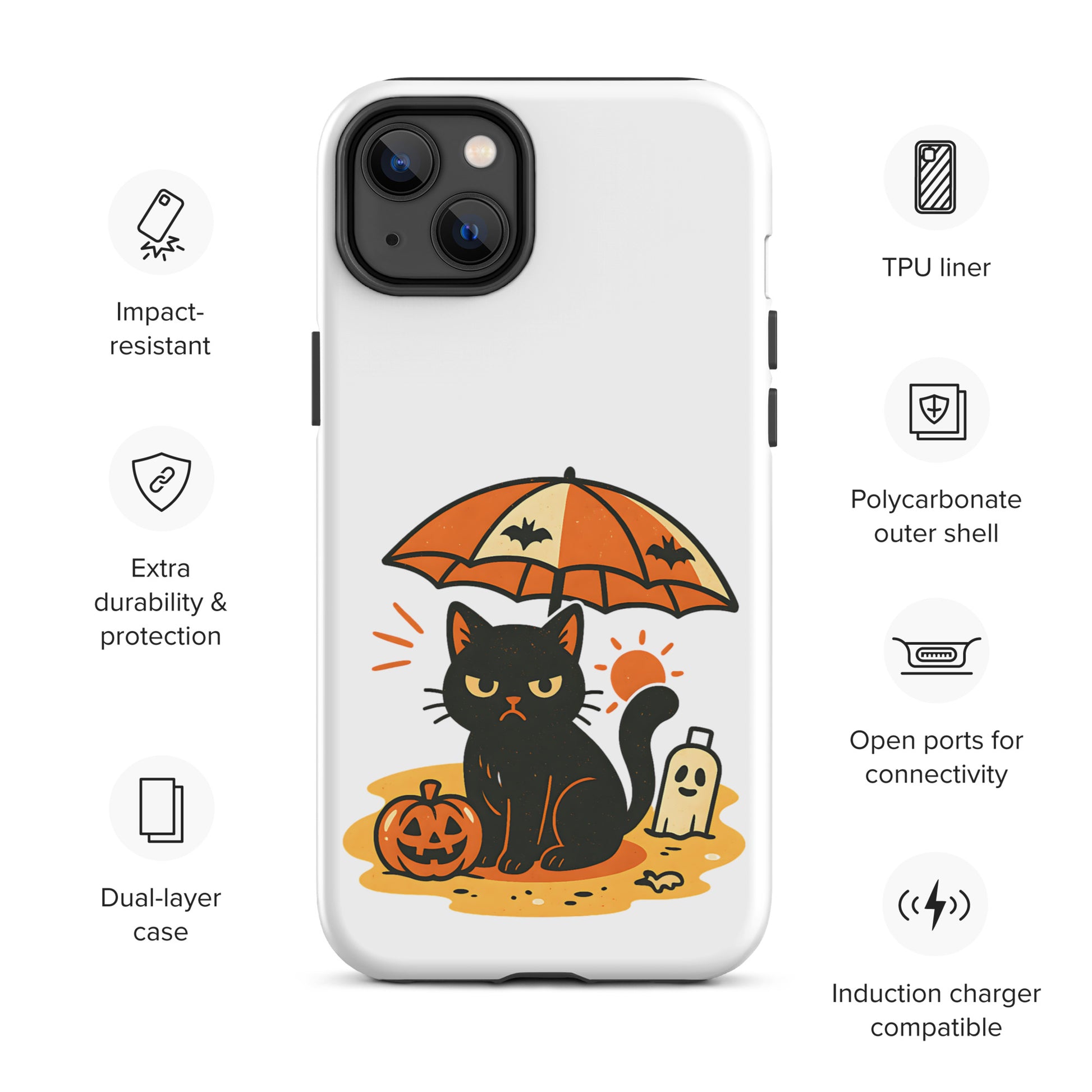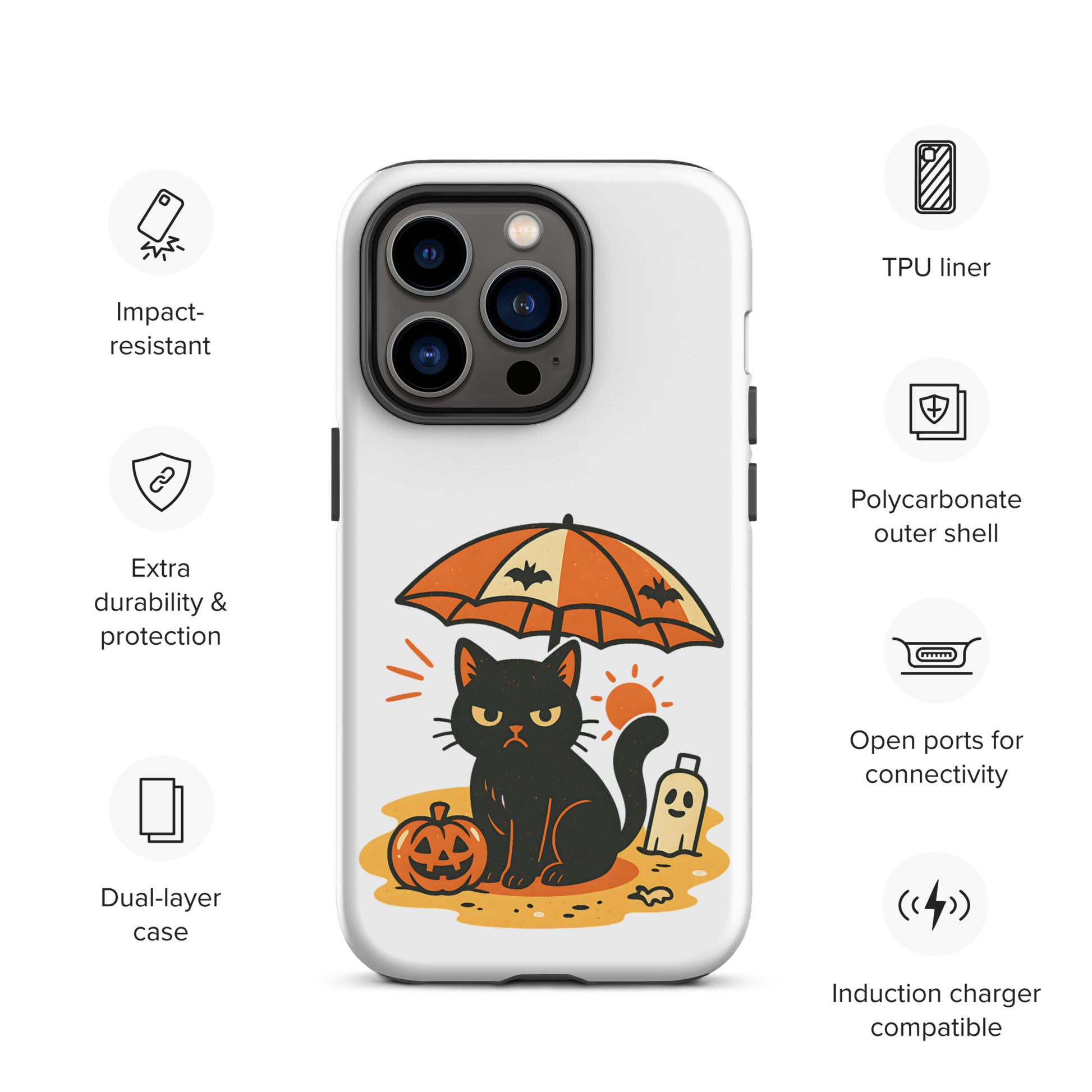 Summerween Grumpy Cat Tough iPhone Case – Spooky Shockproof Cover (11, 12, 13, 14, 15, 16, Pro, Pro Max)
