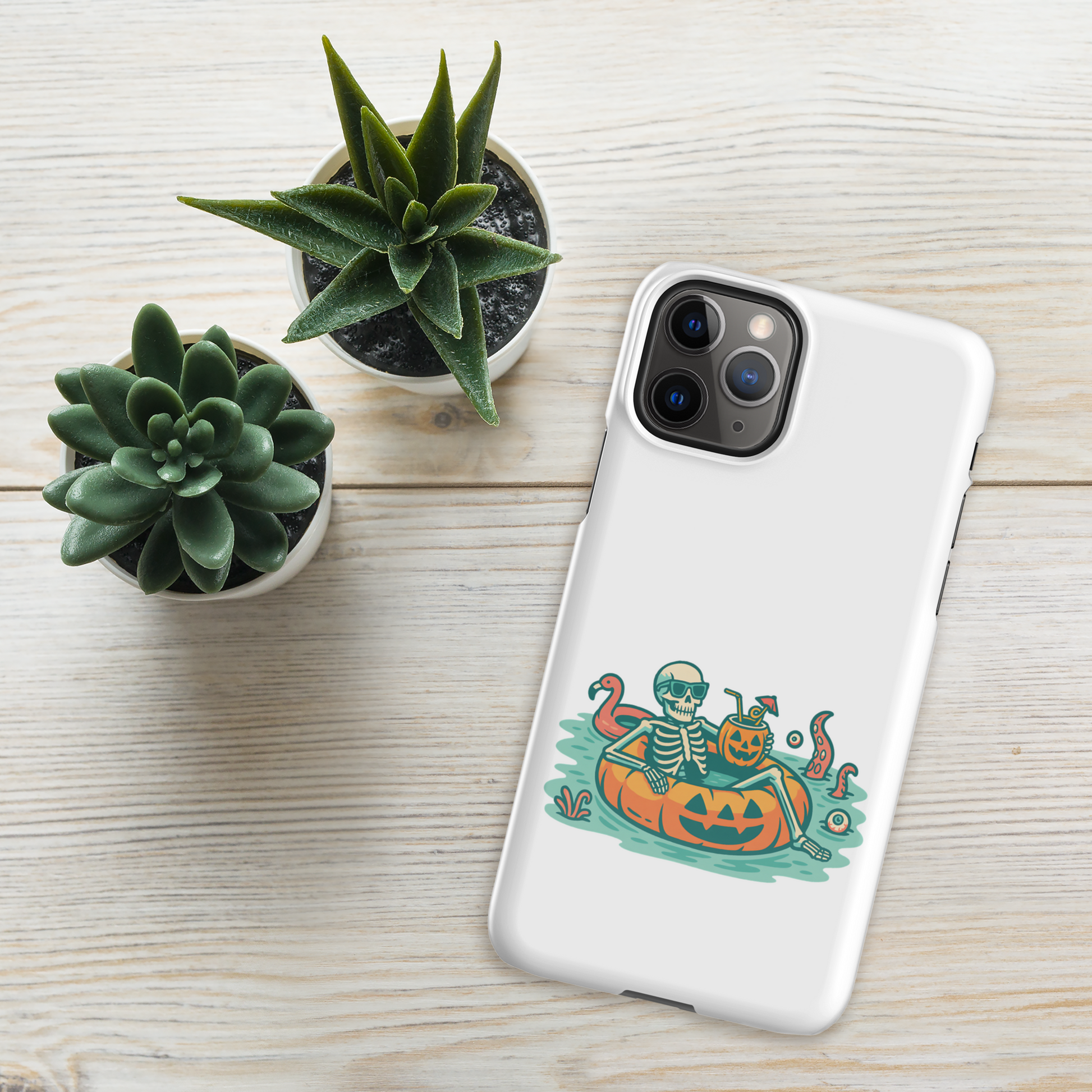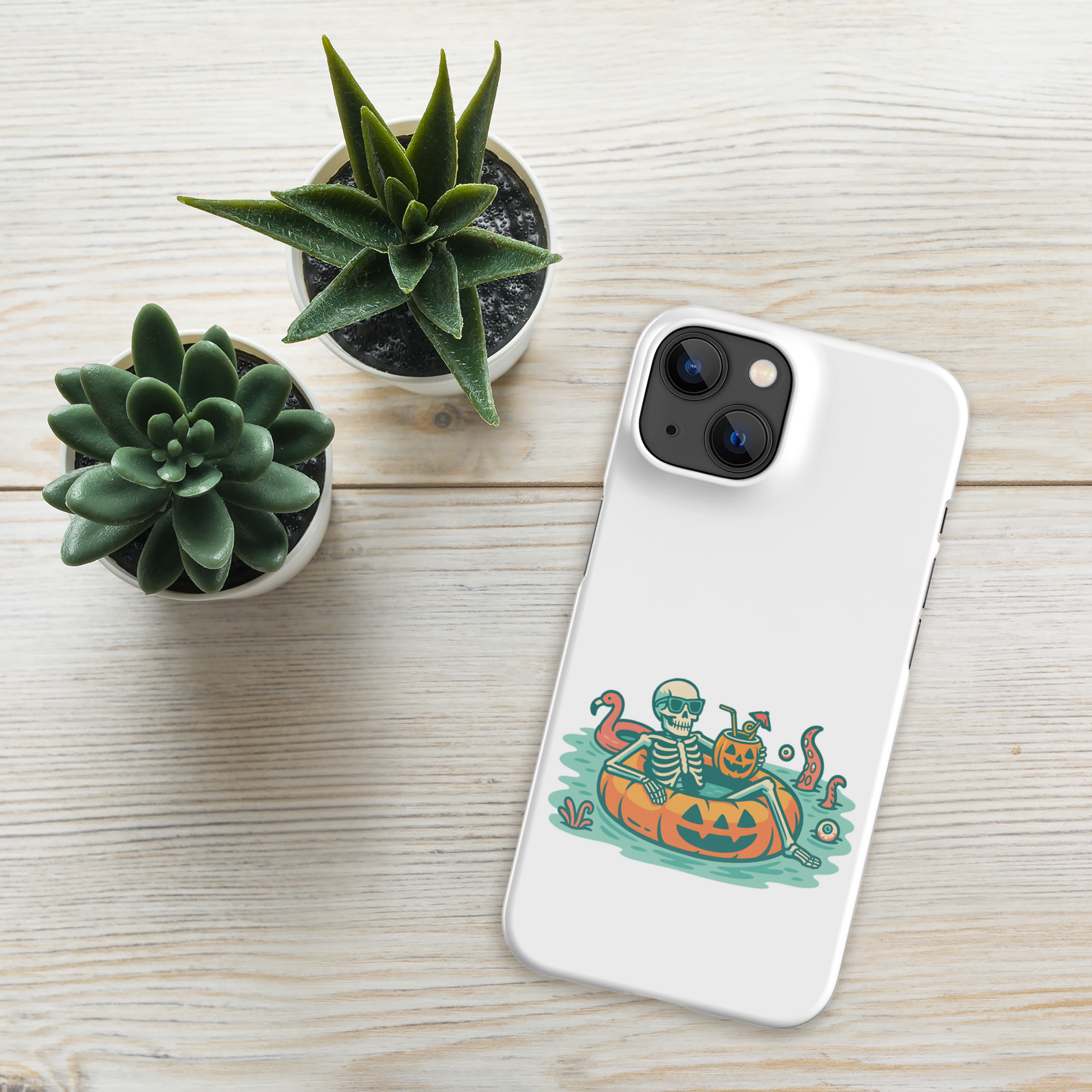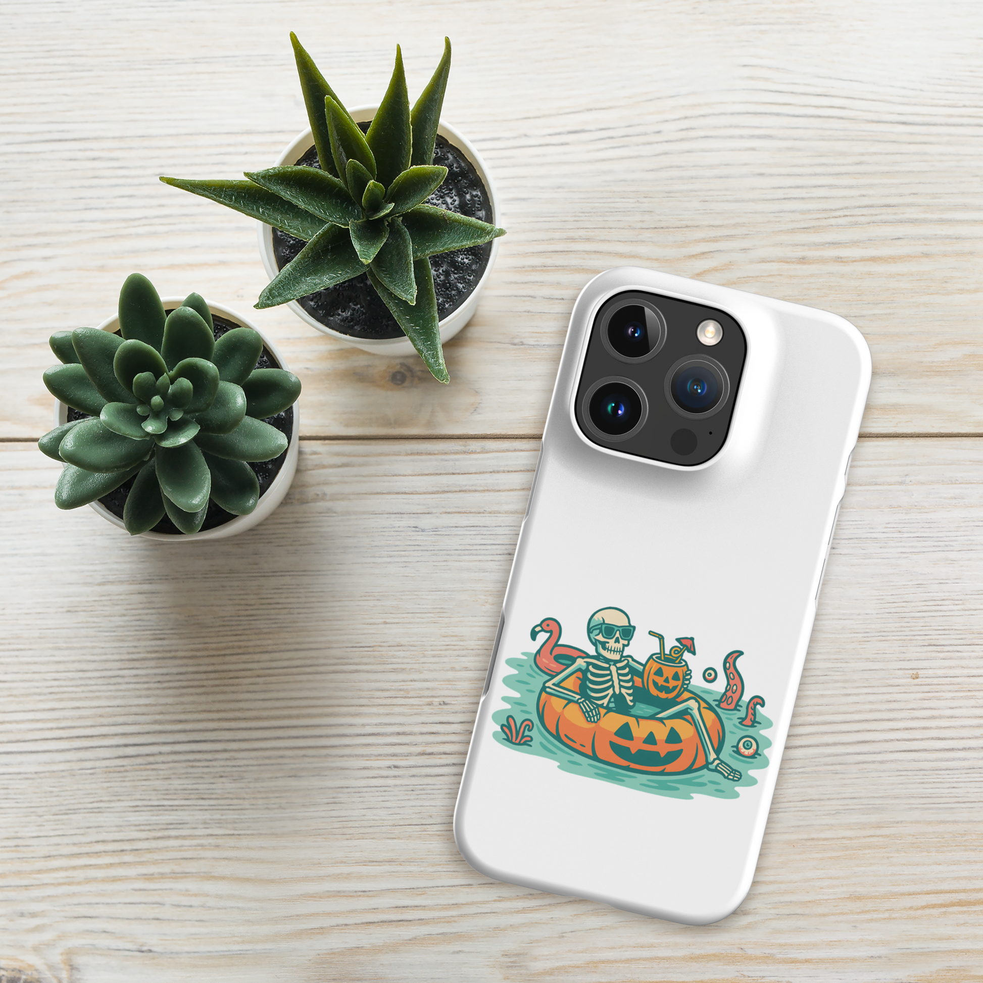 Summerween Skeleton Snap iPhone Case – Poolside Pumpkin Design (11–16, Mini, Pro, Pro Max)